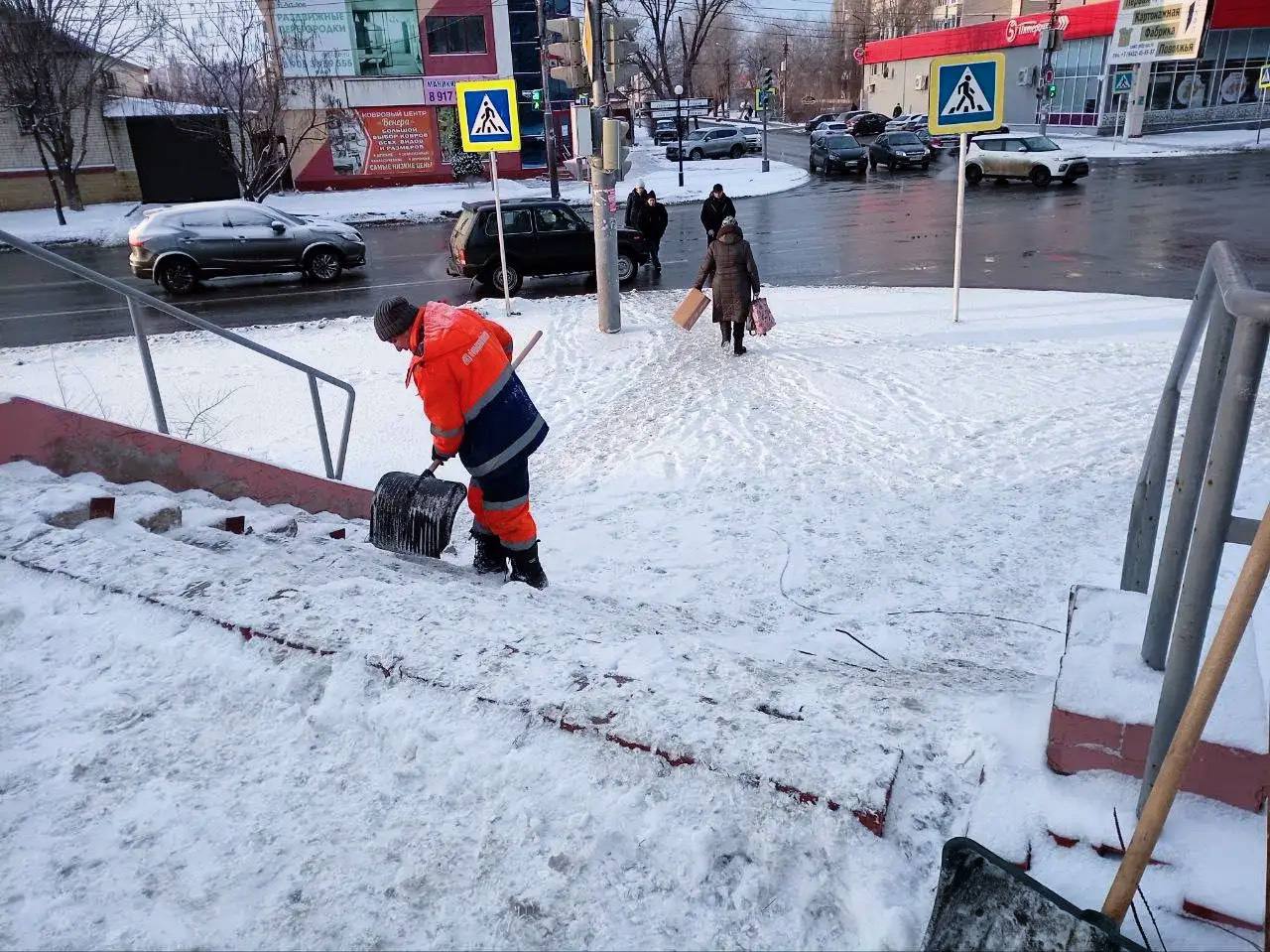 Продолжается механизированная и ручная очистка тротуарной сети города, особе внимание уделяем лестничным маршам и остановочным площадкам.