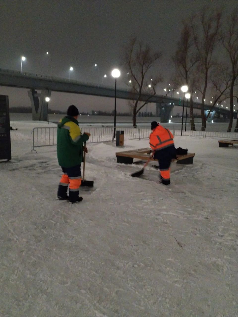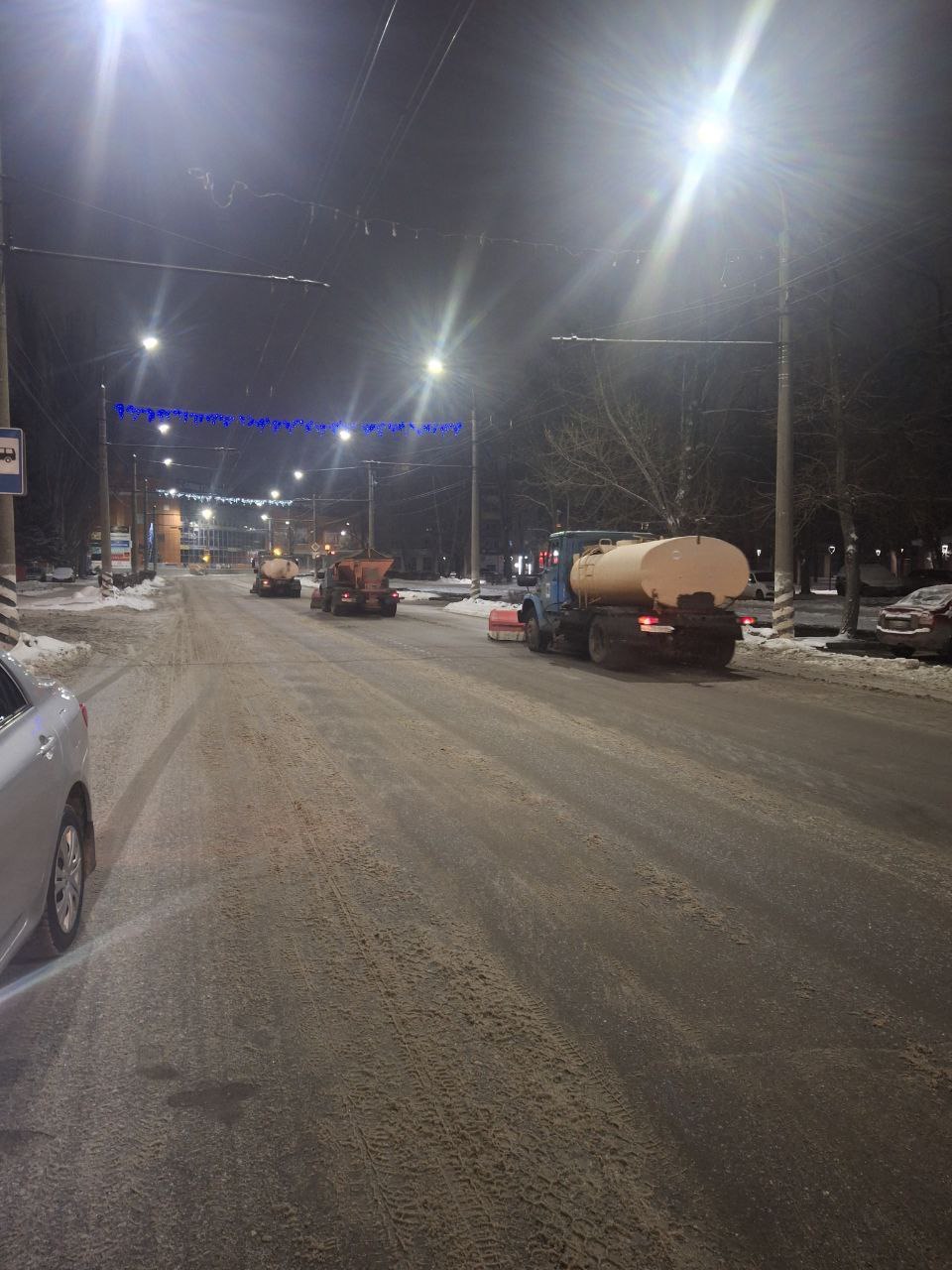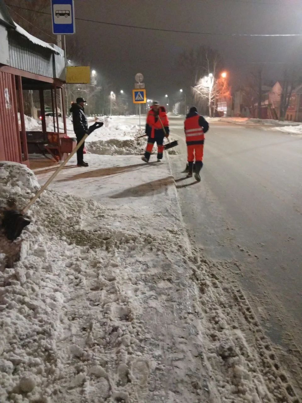 Ночью сотрудники «Комбината благоустройства» убирали и вывозили снег с улиц города, расчищали и посыпали тротуары. Техника также расширяла дороги в островной и центральной частях города. В ночном дежурстве участвовали 29 машин. Было использовано 100 тонн пескосоляной смеси.