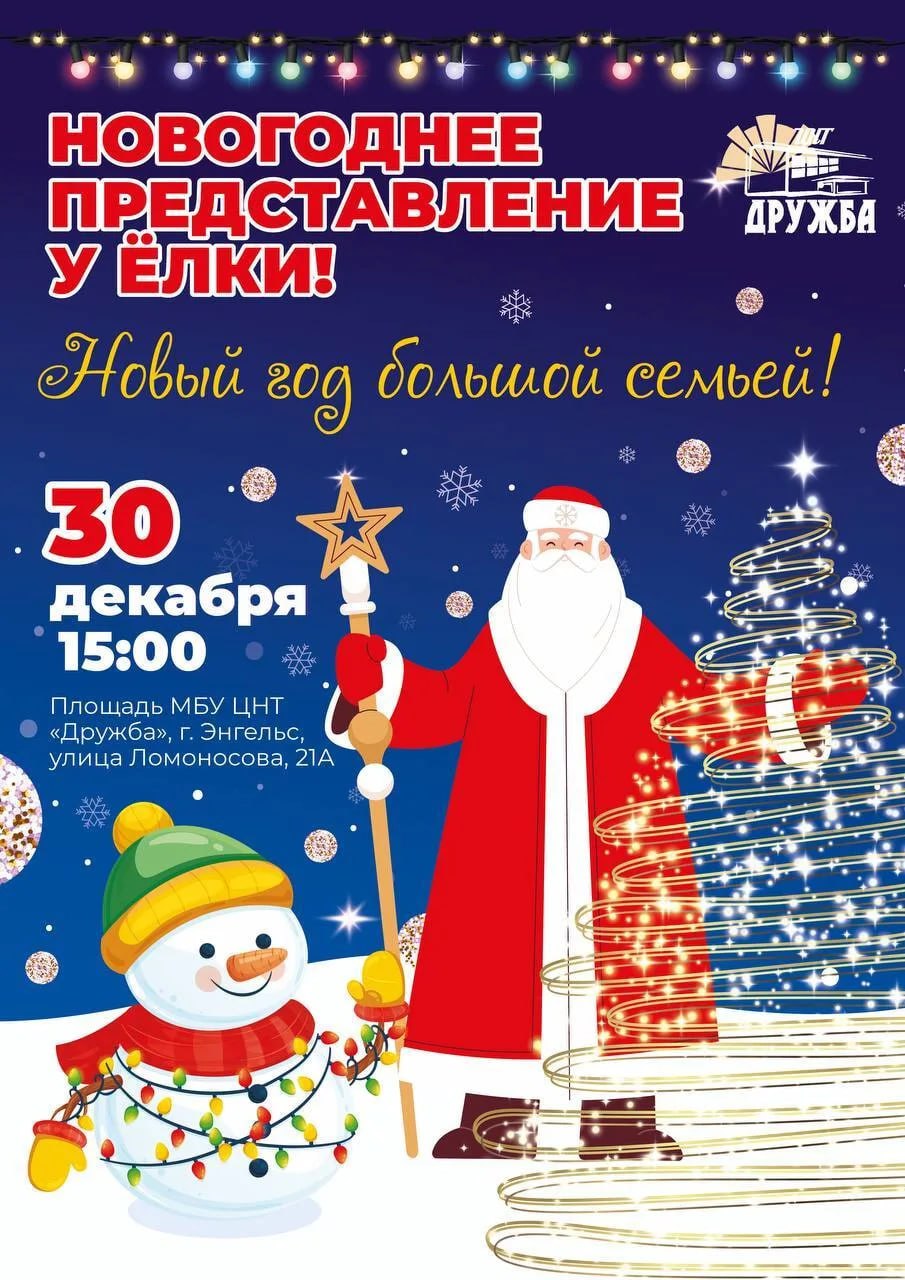 В этом году встречаем «Новый год большой семьей!». Вас ожидает встреча с любимыми сказочными героями – Дедом Морозом и Снегурочкой, увлекательные игры, задорные хороводы и праздничное настроение.