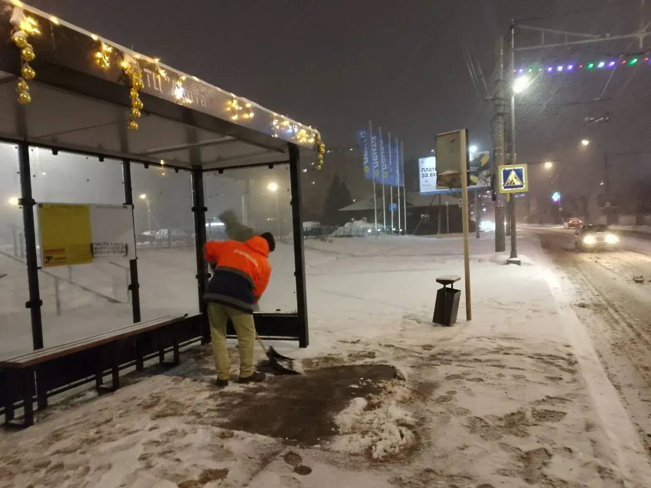 В настоящее время активно проводим работу по очистке тротуарной сети и остановочных площадок.