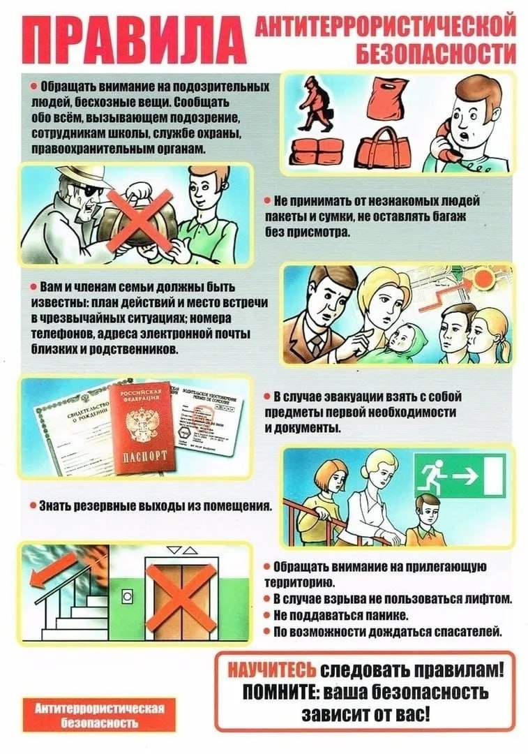 • Четко следуйте указаниям сотрудников полиции, МЧС и служб безопасности.