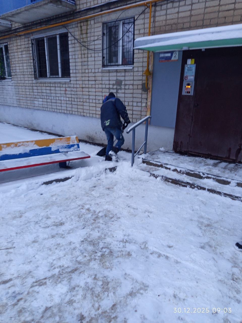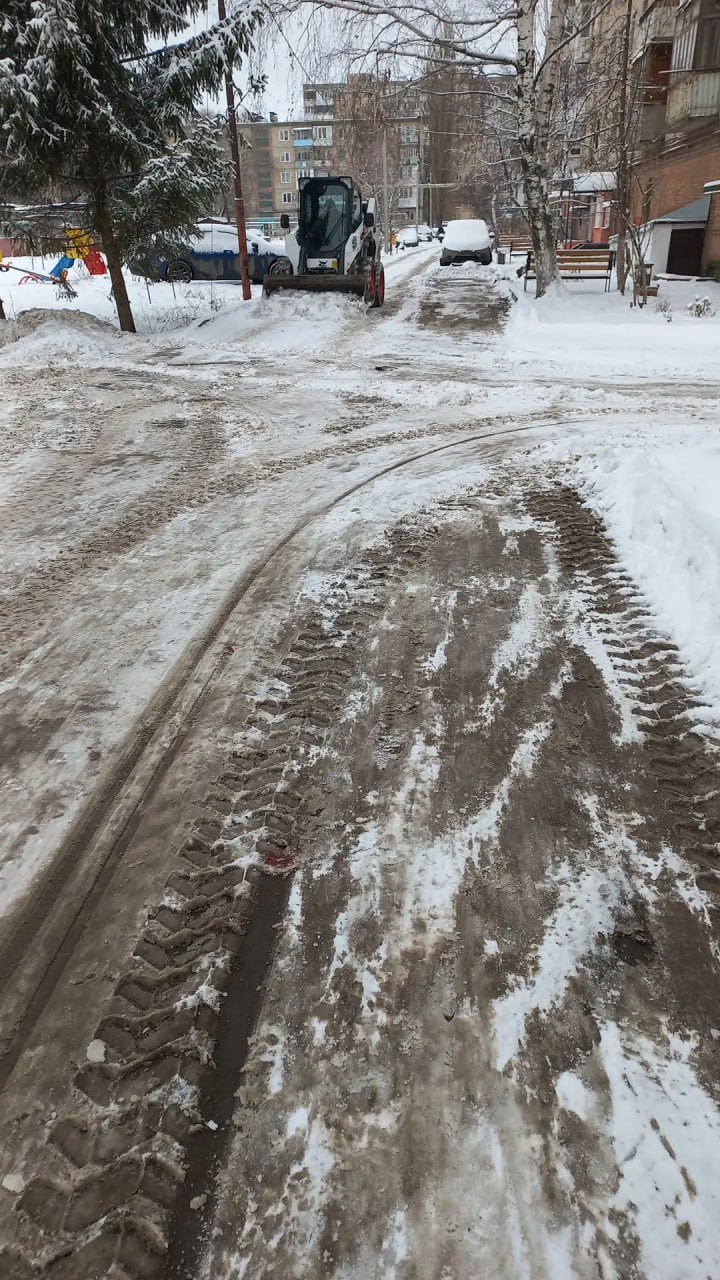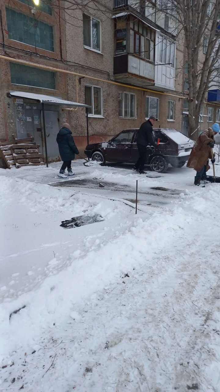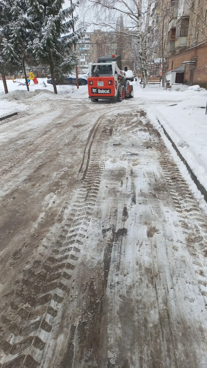 С раннего утра дворники расчищают от снега пешеходные зоны во дворах, при необходимости задействуется снегоуборочная техника.