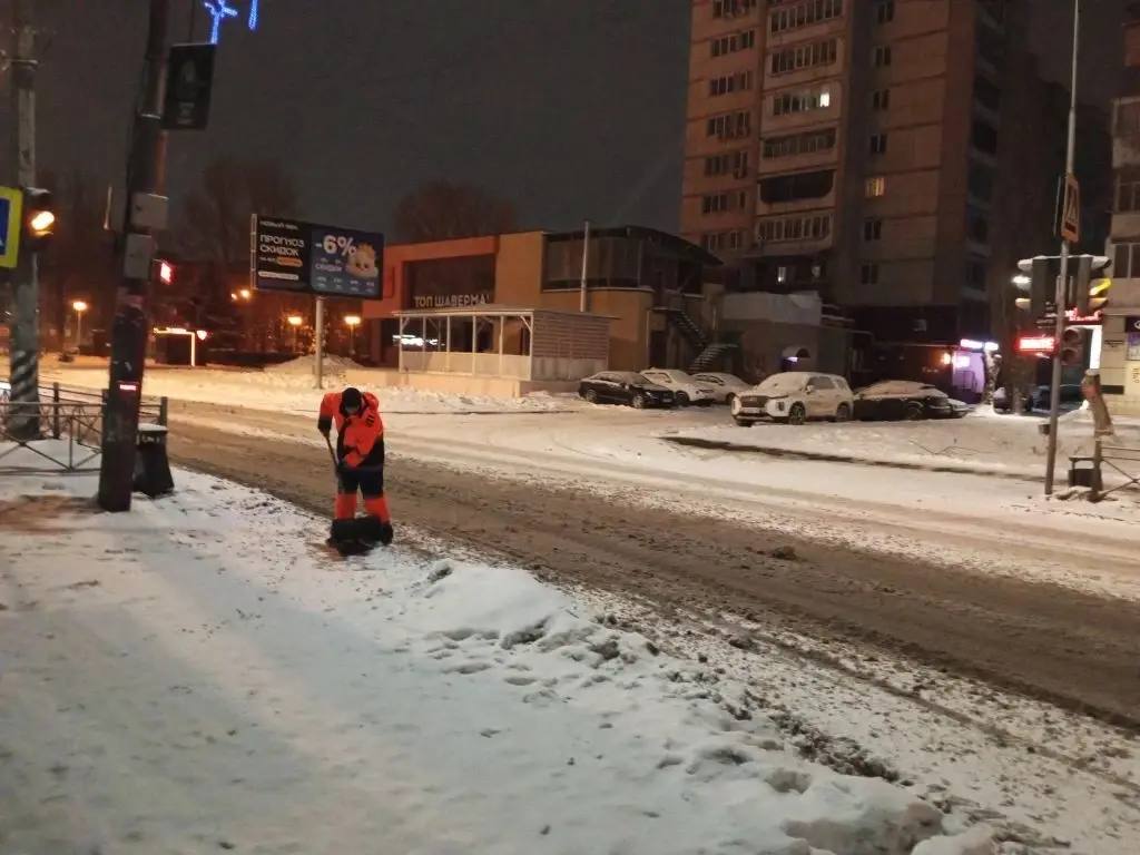 В настоящее время активно проводим работу по очистке тротуарной сети, остановочных площадок и дорожного полотна.