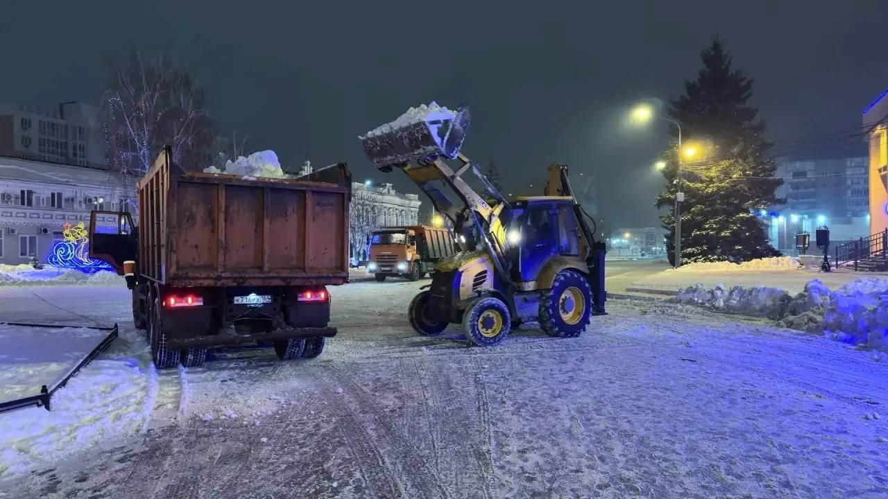 В работе задействована специализированная погрузочная и самосвальная техника. Параллельно продолжаем очистку тротуарной сети города.