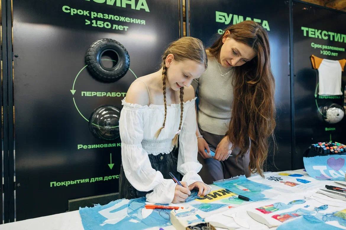 В рамках мастер-классов взрослые и дети создавали брелоки из полистирола и дробленых пластиковых крышек, книжные закладки из переплавленных пакетов, а также открытки из переработанной макулатуры.