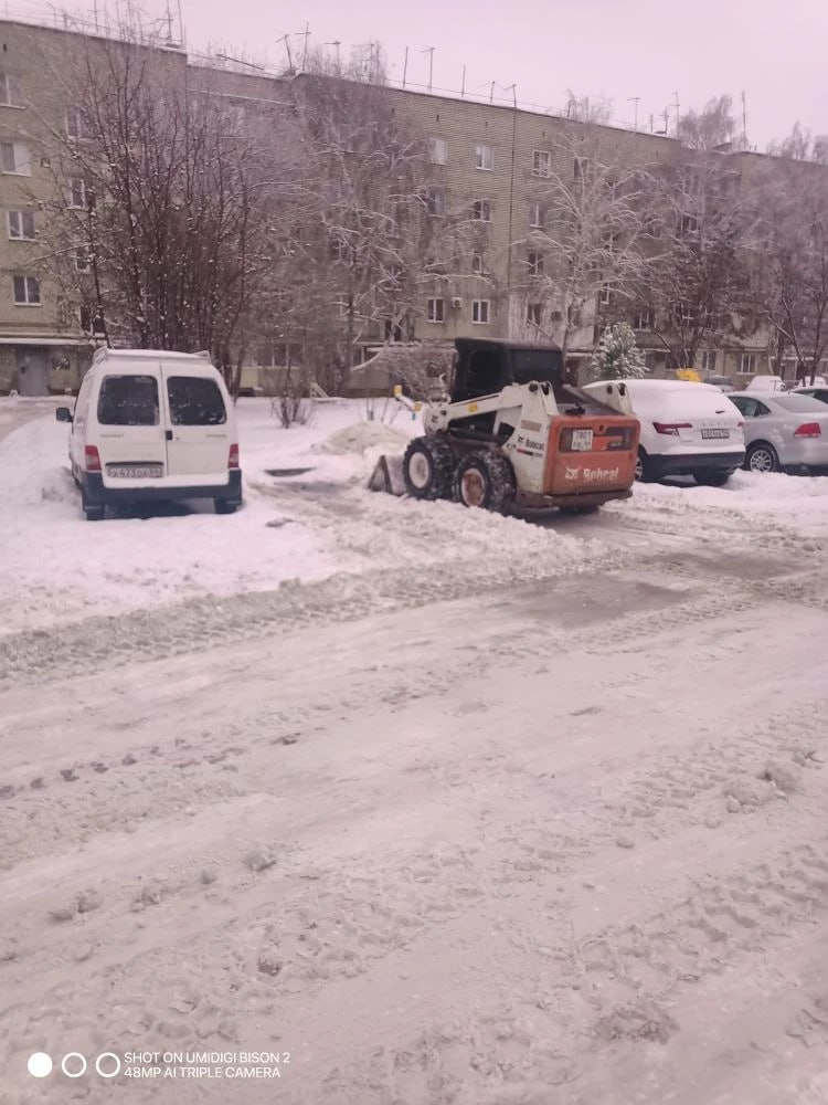 Силами управляющих компаний проводится уборка от снега дворовых территорий. С помощью специализированной техники расчищают пешеходные зоны и внутридворовые проезды.