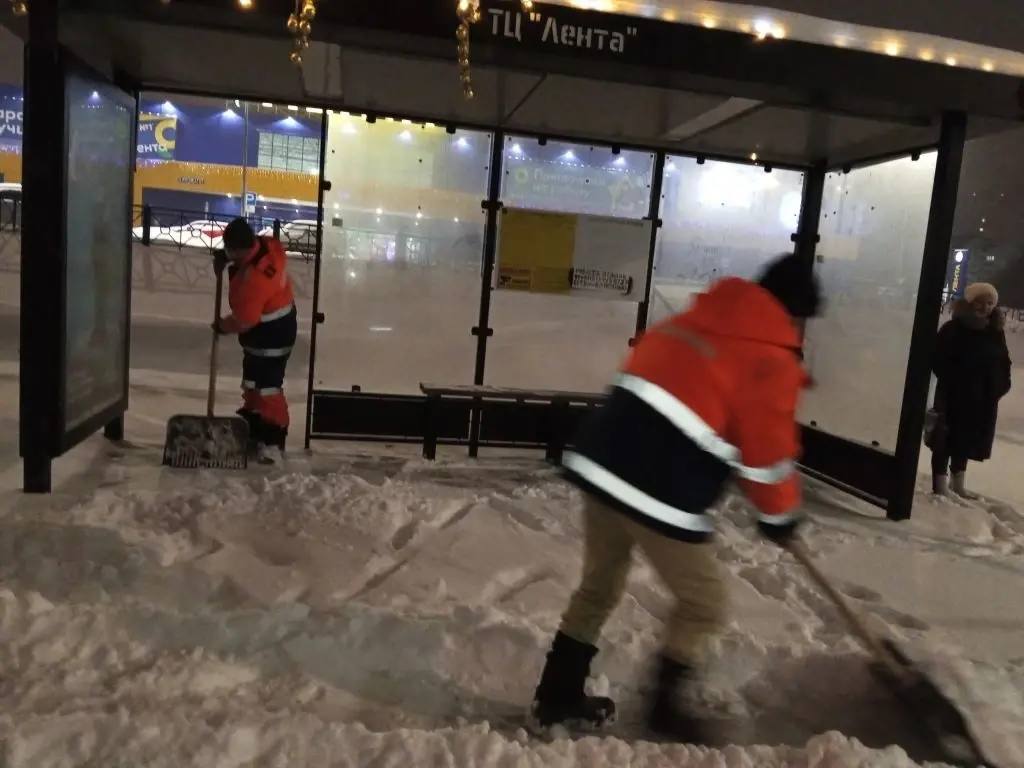Дворники вручную очищают остановочные площадки, пешеходные переходы и лестничные марши