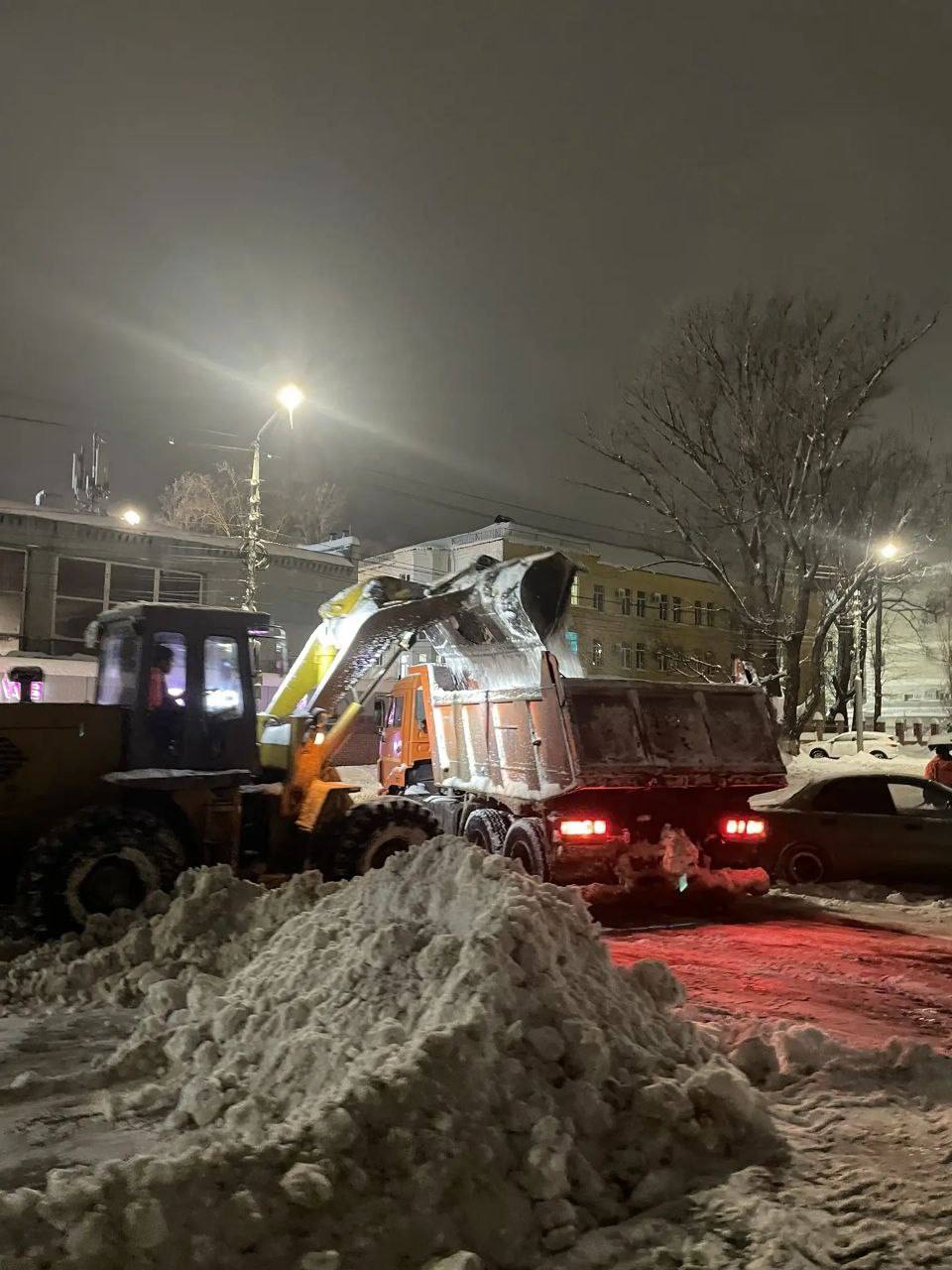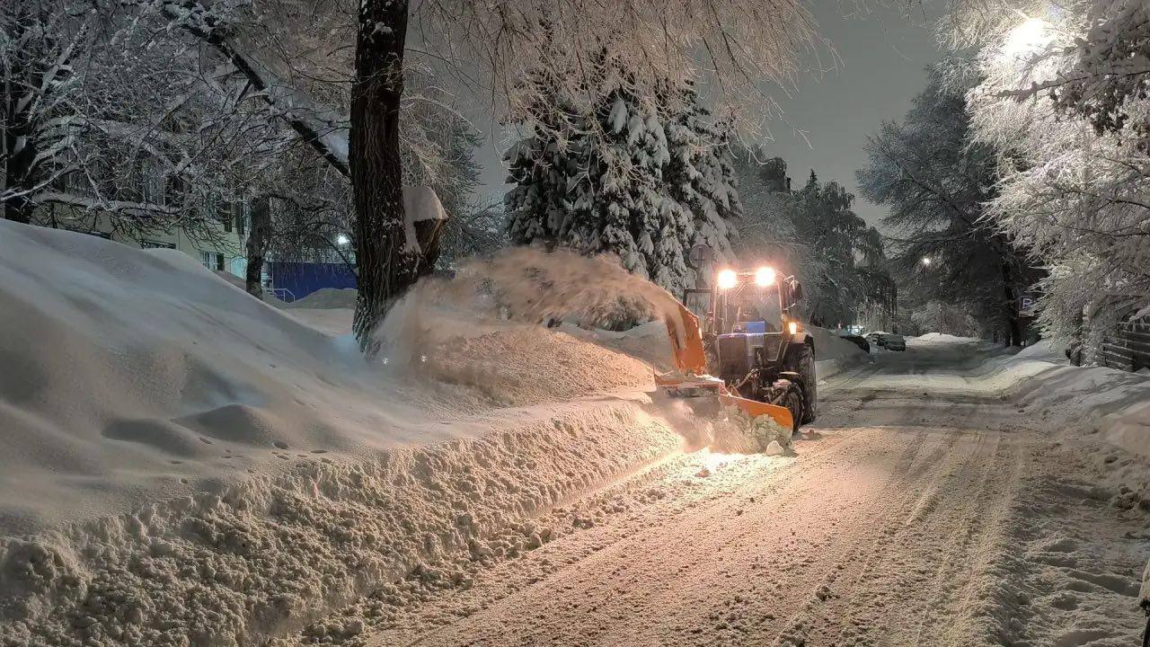 В течение ночи коммунальные службы города устраняли последствия снегопада