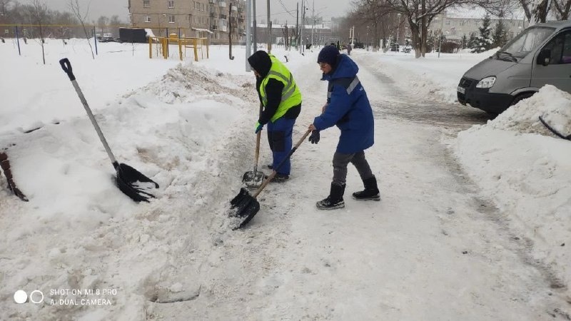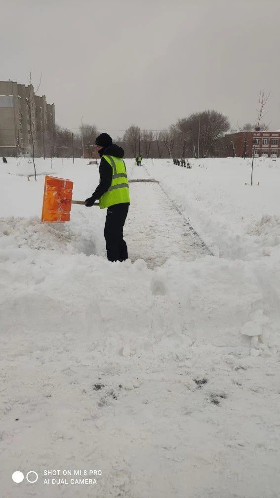 Ведется очистка снега ручным способом и механизированным: - территории у самолета ТУ-16 - эко парк Летка; - парк памяти Героев авиаторов.