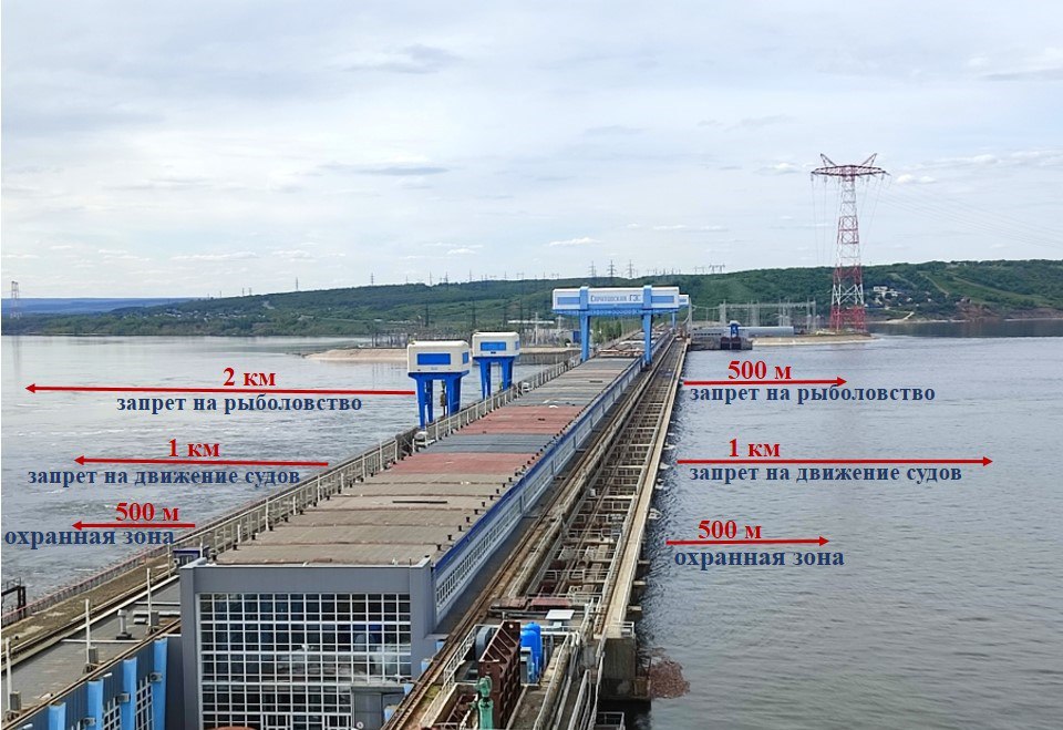 - запрещается движение маломерных судов в верхнем и нижнем бьефах Саратовского гидроузла на расстоянии менее 1 км от плотины;
