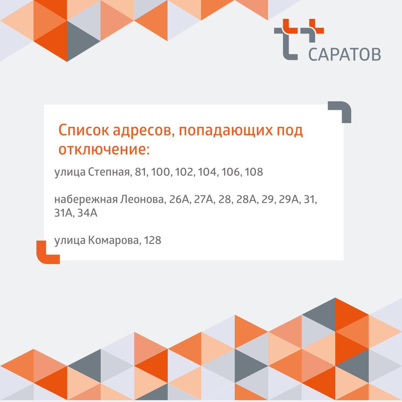 По информации ПАО «Т Плюс» в Саратовской области