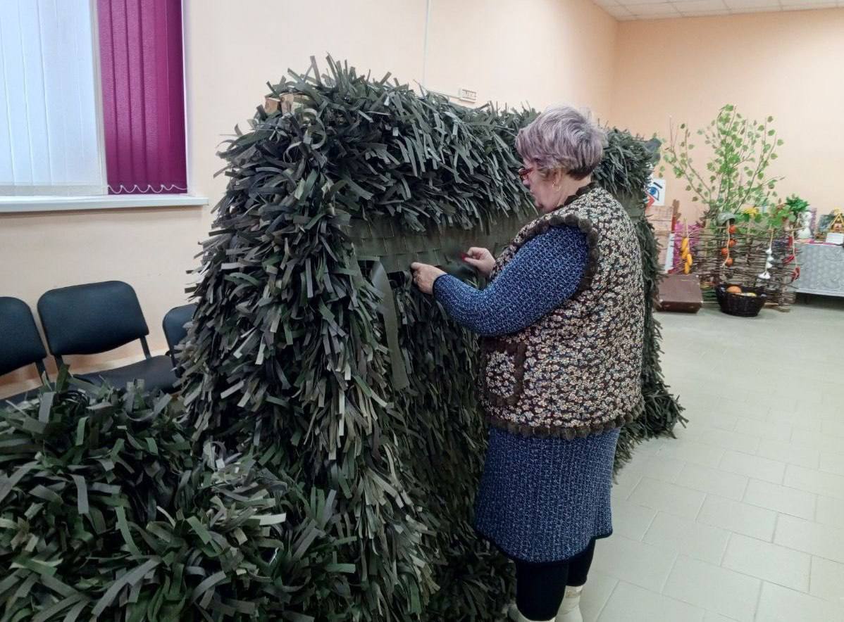 На днях мастерицы завершили плетение очередной маскировочной сети длиной 6 метров. Этот кропотливый труд требует терпения и сосредоточенности: каждый вплетенный лоскуток и каждый узел — это не просто деталь, а частичка общей заботы, символ надежной защиты для тех, кто сейчас на передовой.