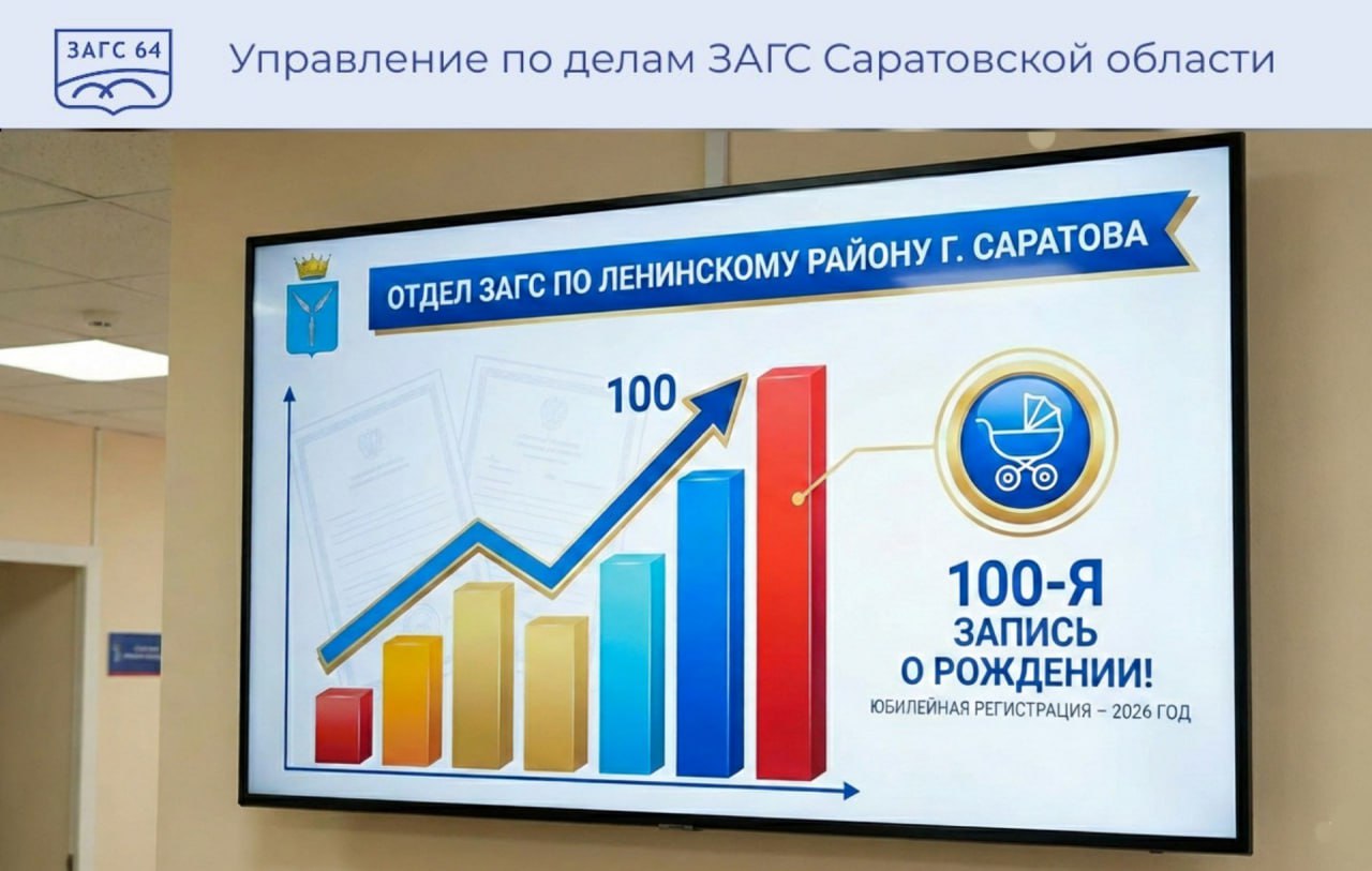 В отделе ЗАГС по Ленинскому району Саратова зарегистрирована сотая запись акта о рождении. Юбилейным новорождённым стала дочь Александры Сергеевича и Татьяны Андреевны Рябовых — Евгения, родившаяся 9 января.