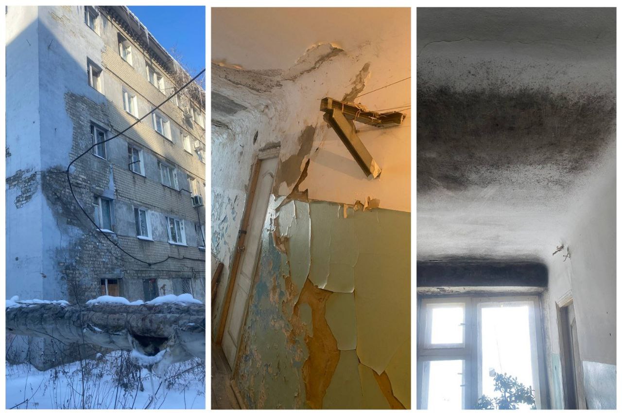 Дом 1969 года постройки признали аварийным ещё в 2023 году. Сегодня он продолжает воспитывать в жителях несгибаемый характер, потому что там:
