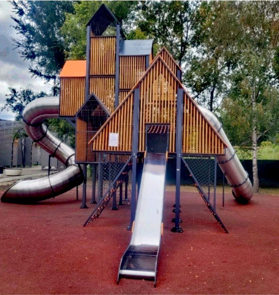 В таких общественных локациях детские площадки часто оборудуют вместе со спортивными комплексами, чтобы привлечь детей разных возрастов. Кроме того, территорию в целом благоустраивают, и она становятся местом отдыха для всей семьи.