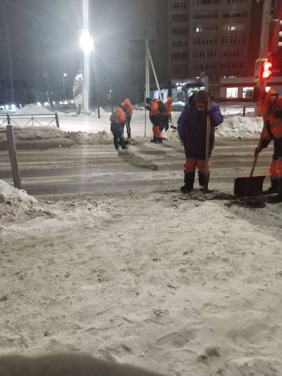 Этой ночью на улицы города вышло 15 единиц спецтехники. Бригады расчищали дороги и тротуары, убирая и вывозя снег с улицы Братьев Захаровых (от Гагарина до Вольской), а также с перекрестков Братьев Захаровых и Ленина, Братьев Захаровых и 20 лет ВЛКСМ. Всего за ночь вывезли 370 тонн снега.