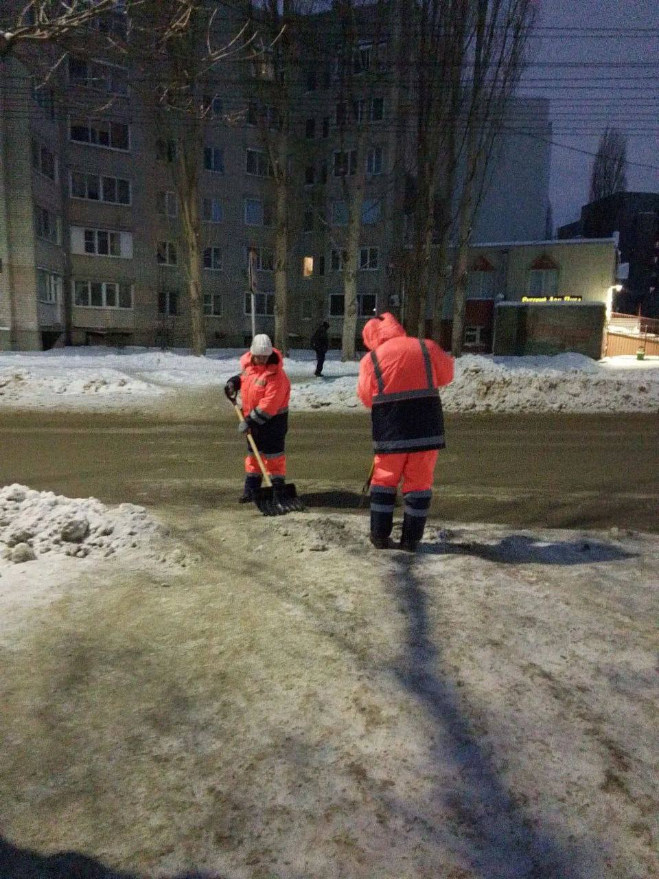 Днем работы по очистке улично-дорожной сети и тротуаров города продолжились. Бригады «Комбината благоустройства» механизировано и вручную собирают и вывозят снег с остановок и пешеходных переходов на улицах Трнавской, Факел Социализма и Гагарина (от Факела Социализма до Комсомольской). Также техника продолжает вывозить снег с улицы Минской.