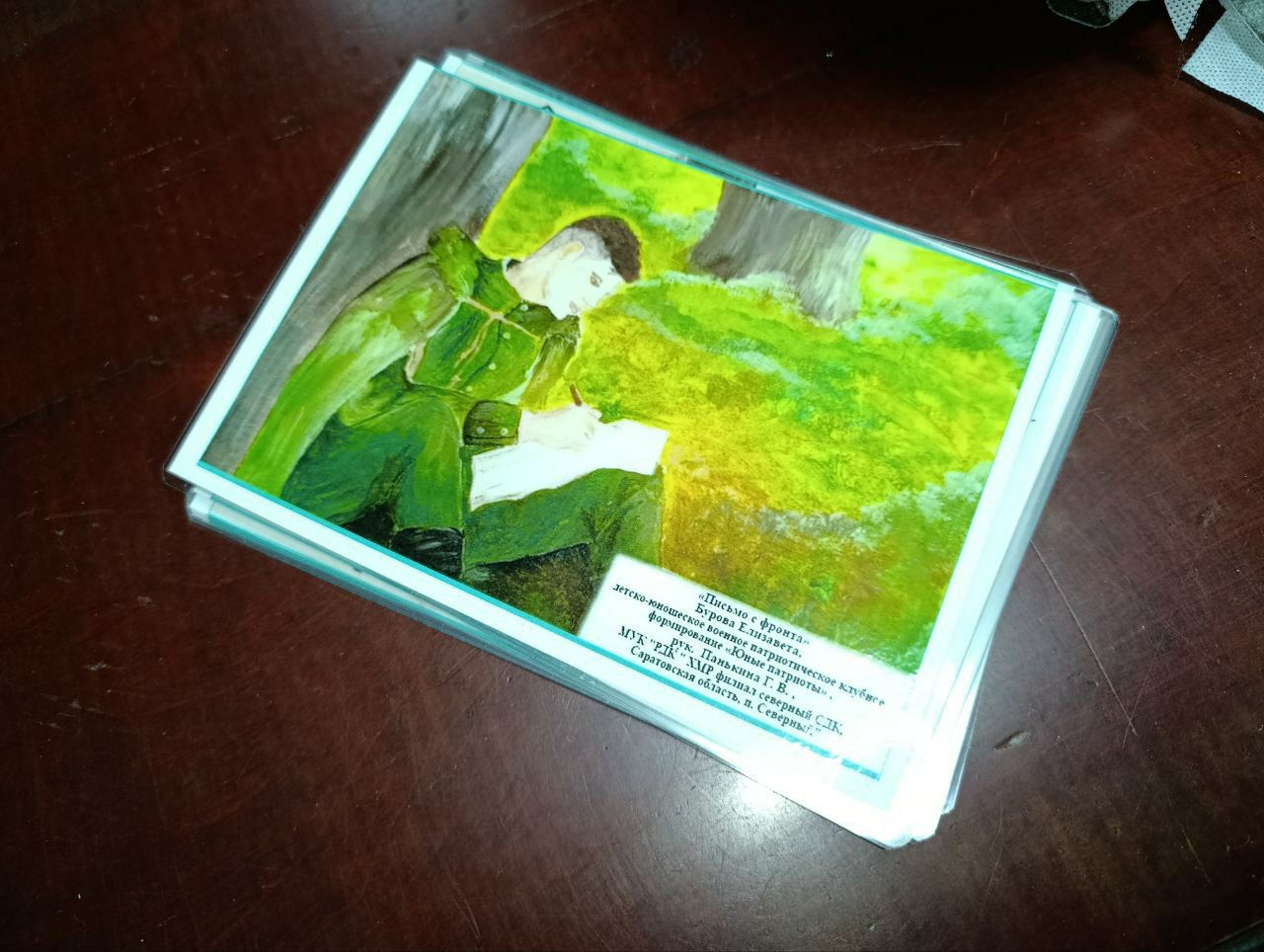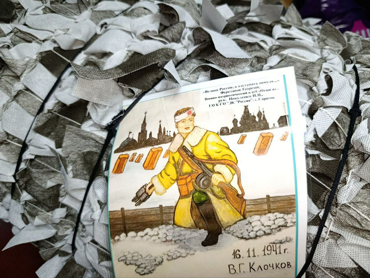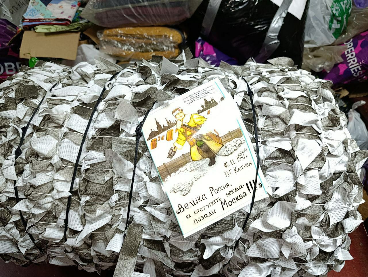 Во Дворце культуры «Россия» готовят к отправке новую партию помощи для бойцов. Помимо жизненно необходимых вещей — маскировочных сетей, предметов обихода и гигиены — в коробки бережно укладывают особенные открытки. Это репродукции рисунков победителей открытого творческого фестиваля среди военно-патриотических клубных формирований и объединений патриотической направленности «За нами будущее России» в номинациях «Изобразительное творчество» и «Эссе», который стал заключительным этапом одноимённого большого патриотического проекта, реализованного Дворцом культуры «Россия».