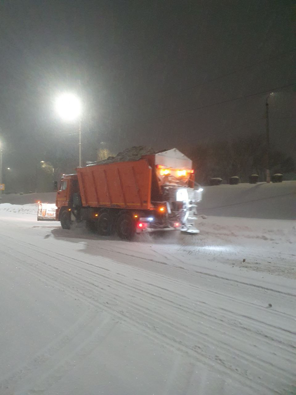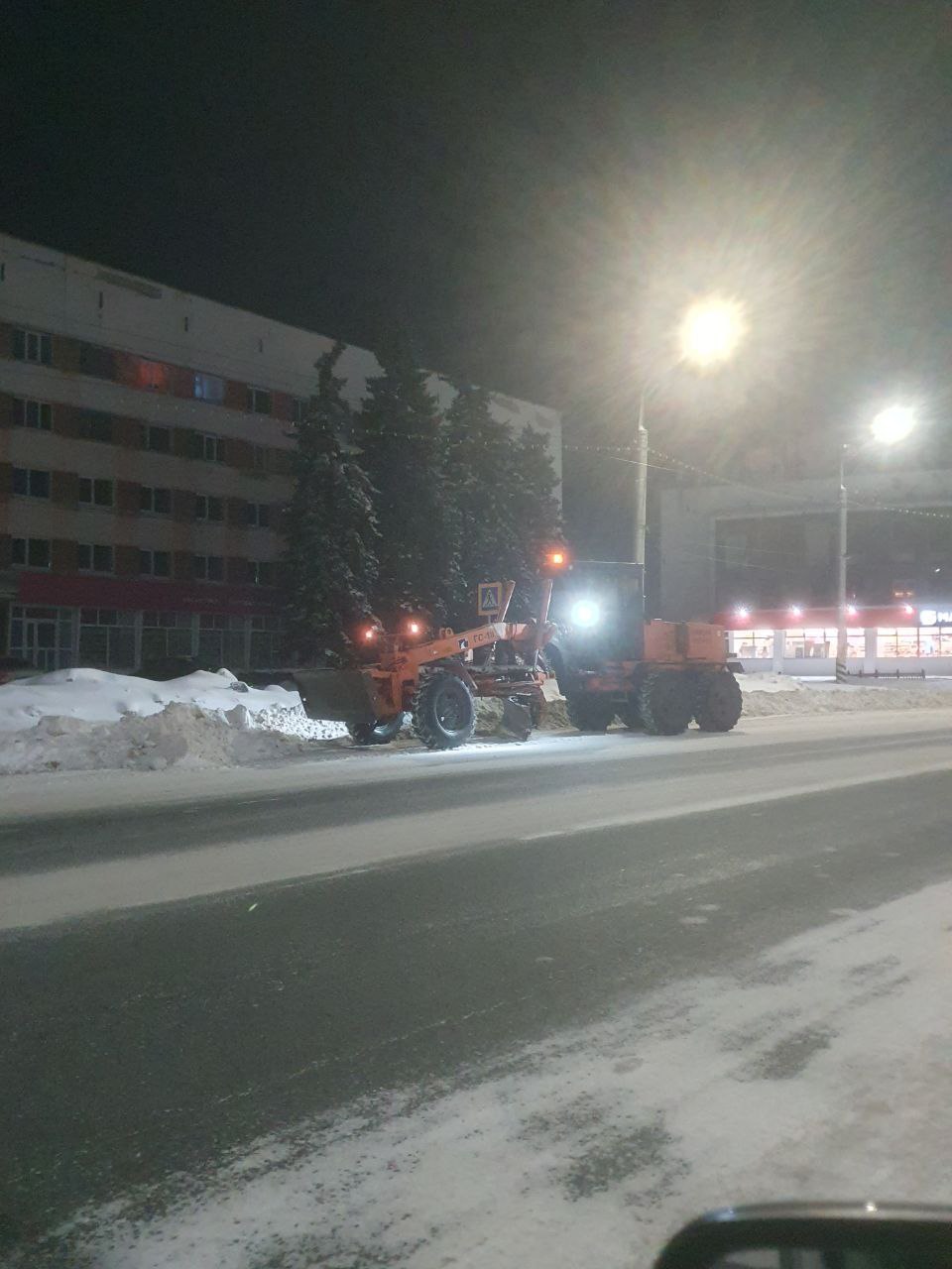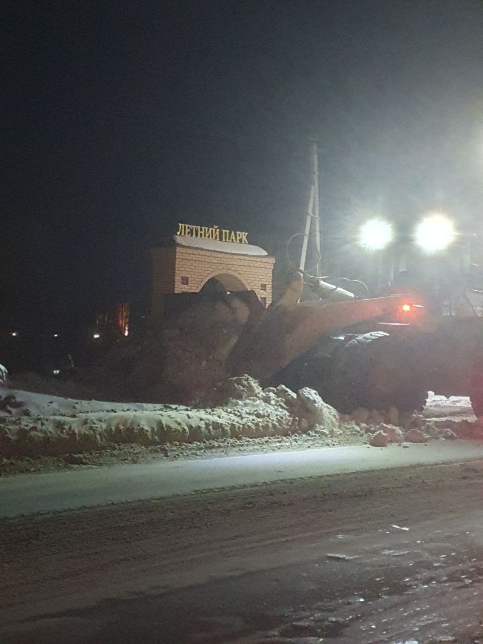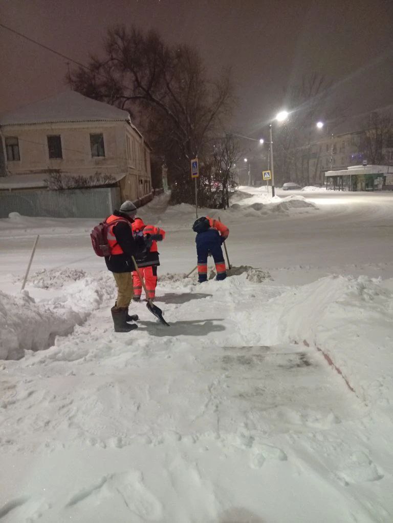 Сегодня ночью сотрудники «Комбината благоустройства» убирали и очищали снег. Работы сейчас продолжаются