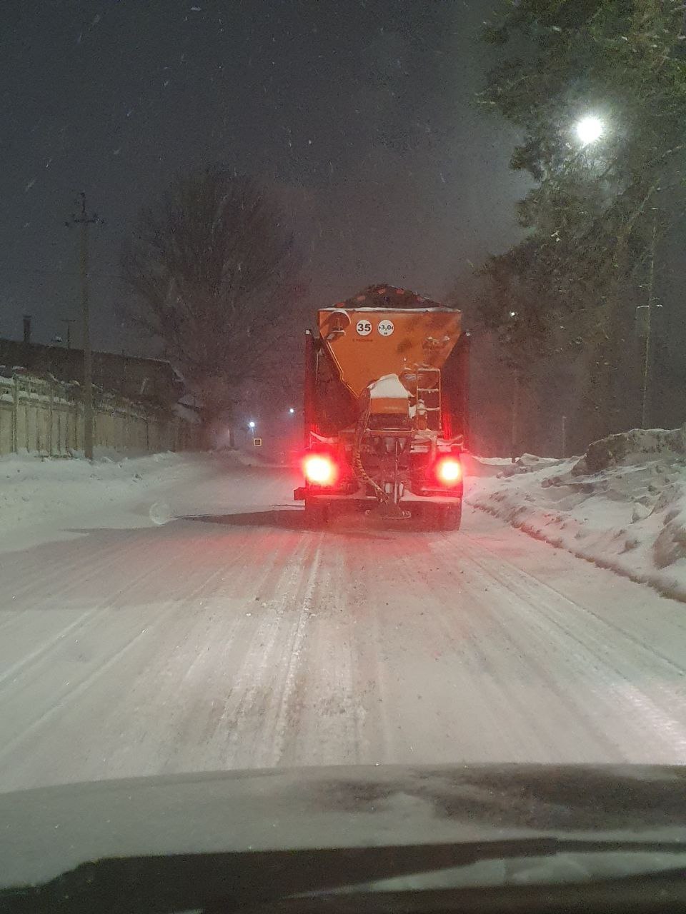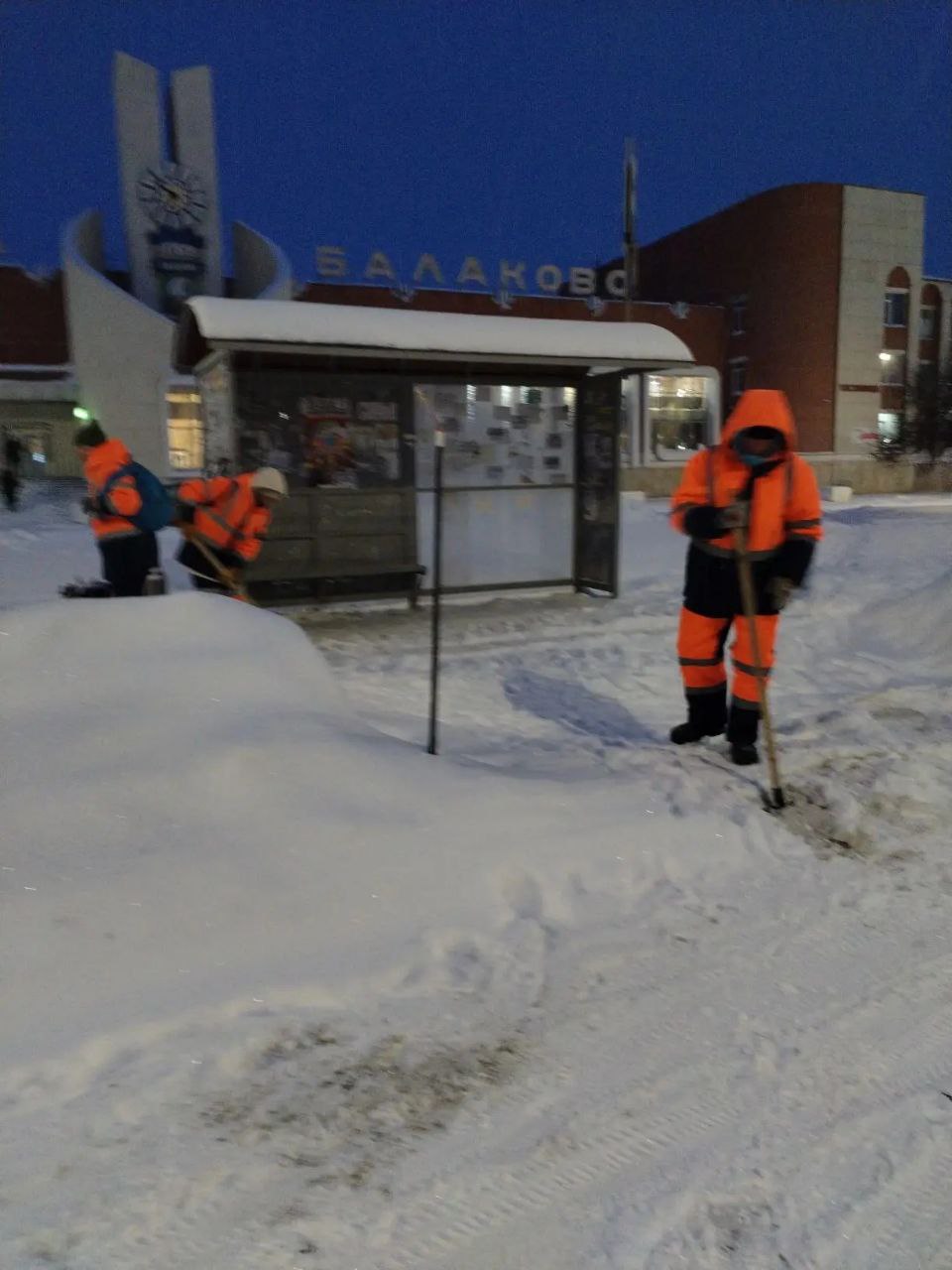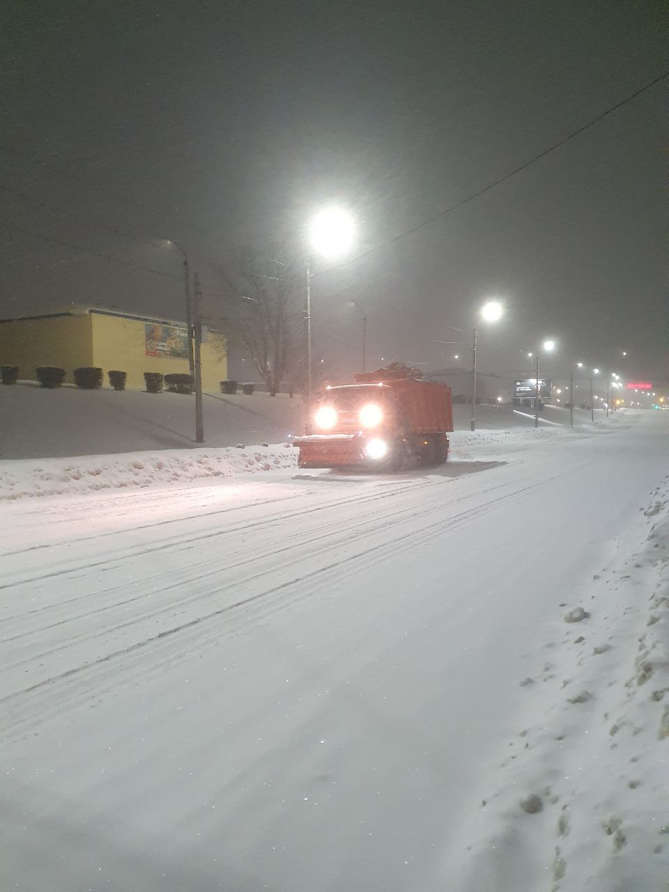 Сегодня ночью сотрудники «Комбината благоустройства» убирали и очищали снег. Работы сейчас продолжаются