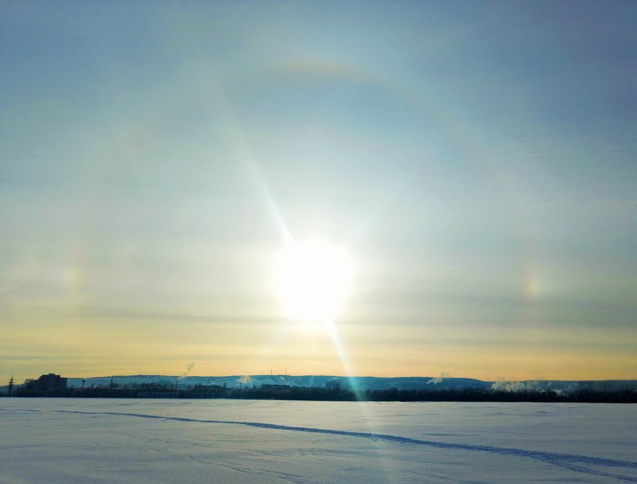 Солнечное гало украсило небо над Саратовом