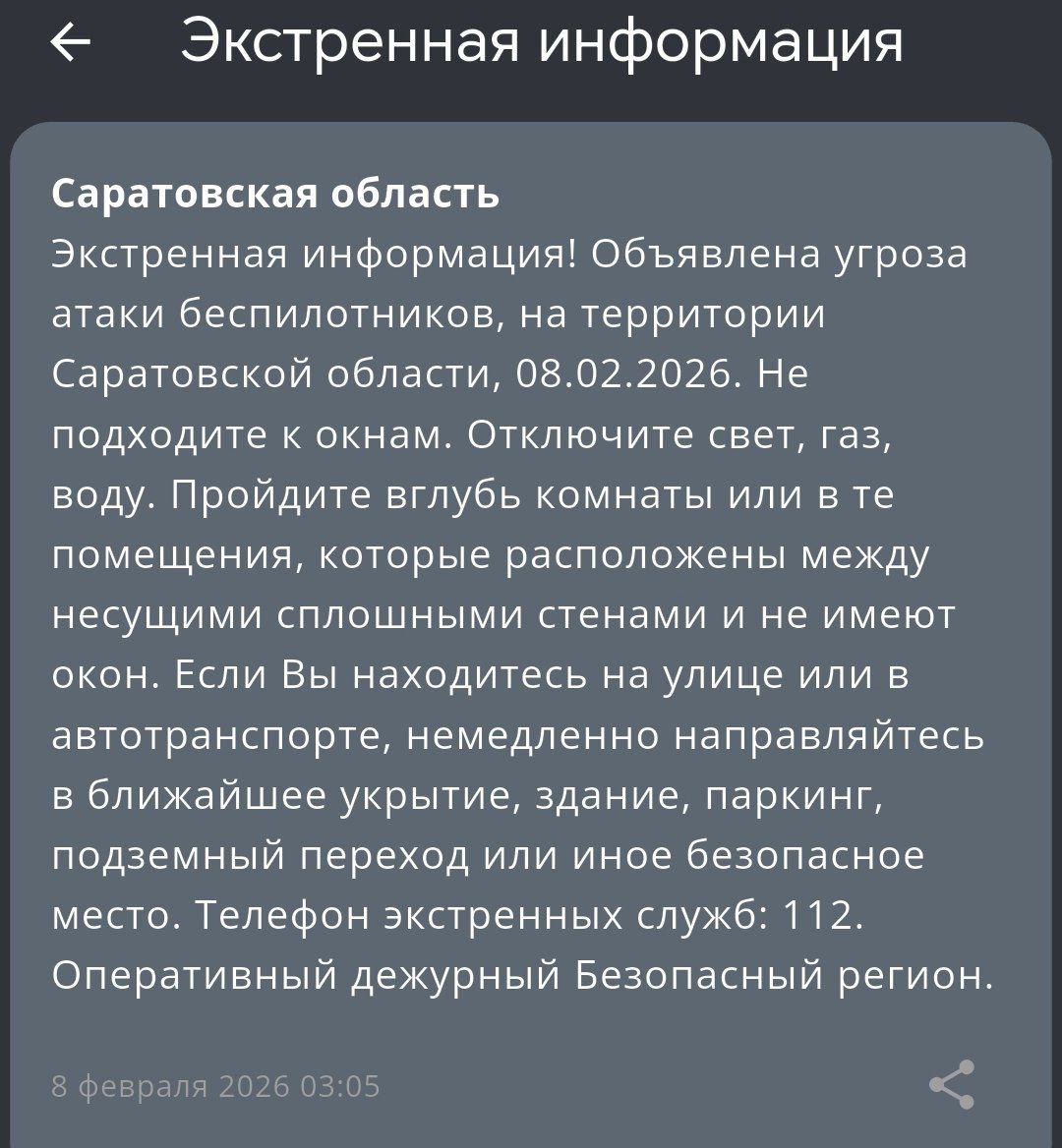 Объявлена угроза атаки беспилотников, на территории Саратовской области — РСЧС