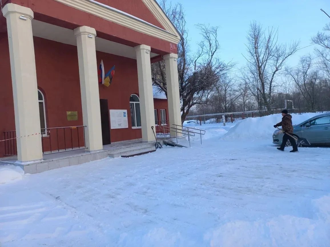 На территориях, прилегающих к учреждениям культуры проводят уборку снега.