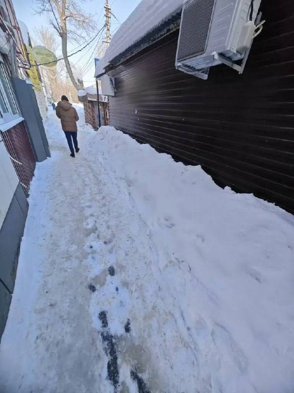 Комитетом муниципального контроля Саратова продолжается ежедневный контроль за своевременной очисткой правообладателями нежилых зданий прилегающих территорий от снега и наледи.
