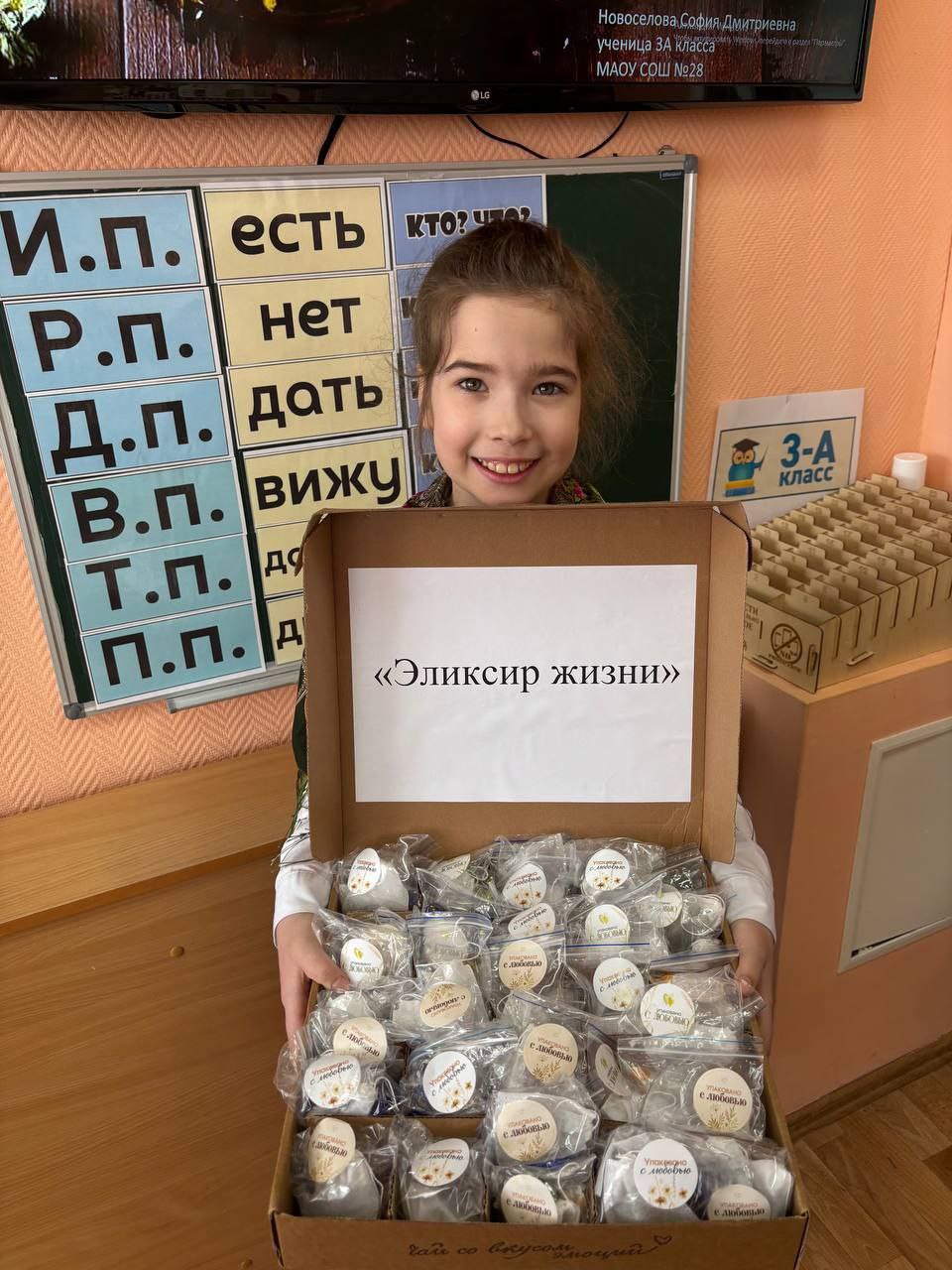 Третьеклассники школы № 28 завершили трогательный и важный социальный проект «Эликсир жизни». Его инициатором стала ученица 3А класса Новоселова София, которая во время каникул познакомилась с участником специальной военной операции Александром Георгиевичем Немцевым.Солдат рассказал, как в суровых фронтовых условиях небольшие ритуалы мирной жизни помогают сохранять силы и боевой дух.