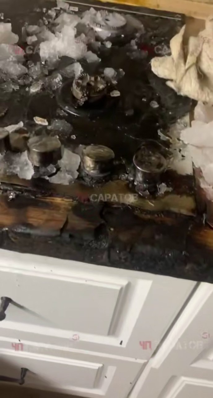 Отметим, что в социальных сетях очевидцы поделились видео с места происшествия. Мужчина заснял обугленную плиту, испорченную мебель, а также показал, как разошелся натяжной потолок, обнажив штукатурку. Лишь чудом потолок не загорелся, иначе последствия были бы еще более плачевные.
