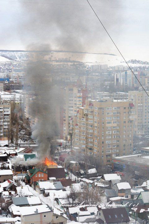 Сильный пожар в частном секторе в районе улиц Белоглинской и Рахова, сообщает читатель