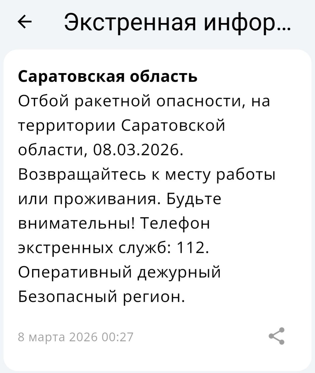 От Министерства обороны поступила информация об угрозе БПЛА. Локально в местах возможной угрозы могут работать системы оповещения. Все экстренные службы приведены в полную готовность.