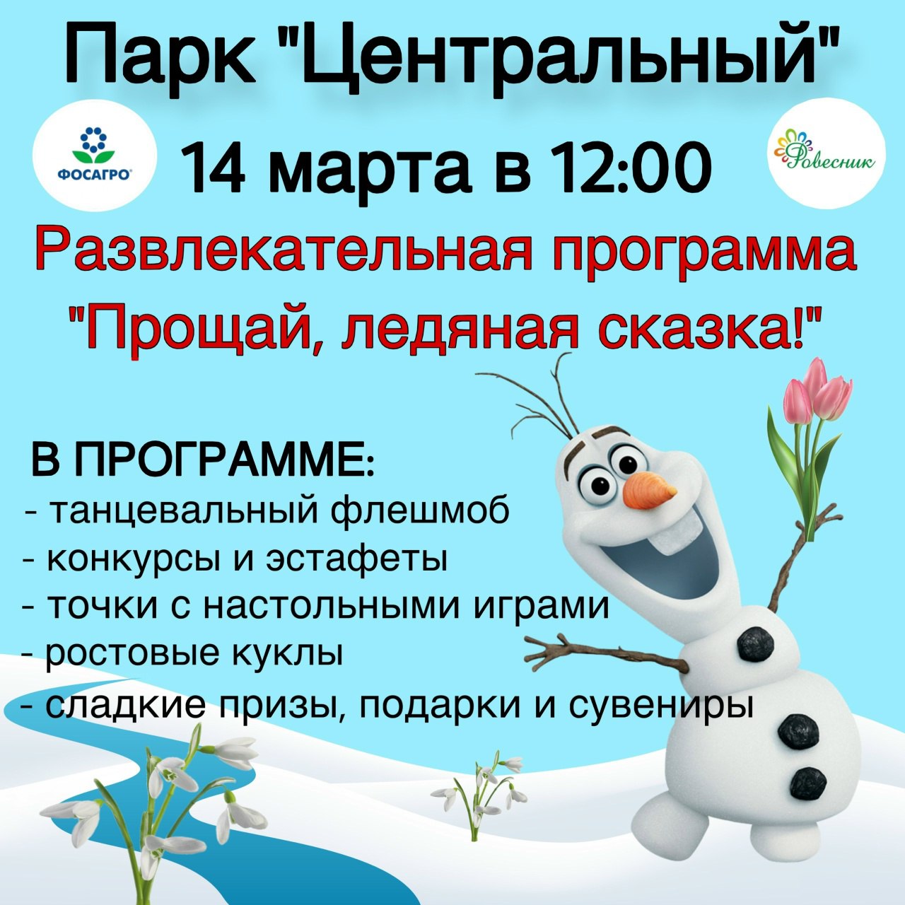 Центр «Ровесник» приглашает жителей и гостей города на развлекательную программу «Прощай, зимняя сказка!». Это последний шанс насладиться зимними забавами в уходящем сезоне и зарядиться отличным настроением перед наступлением тепла.