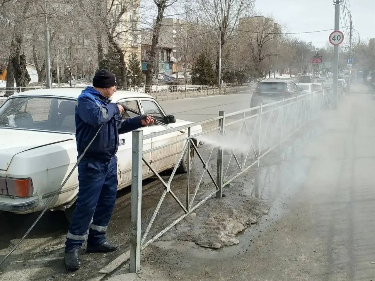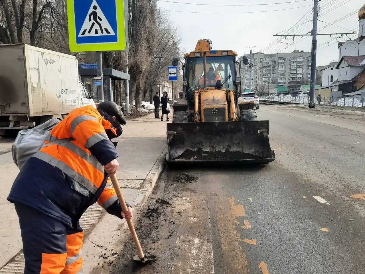 Коммунальные службы проводят уборку дорог, пешеходных зон и общественных территорий. Помимо этого, осуществляется подбор мелкого мусора, ремонт и очистка остановочных павильонов и дорожных ограждений.