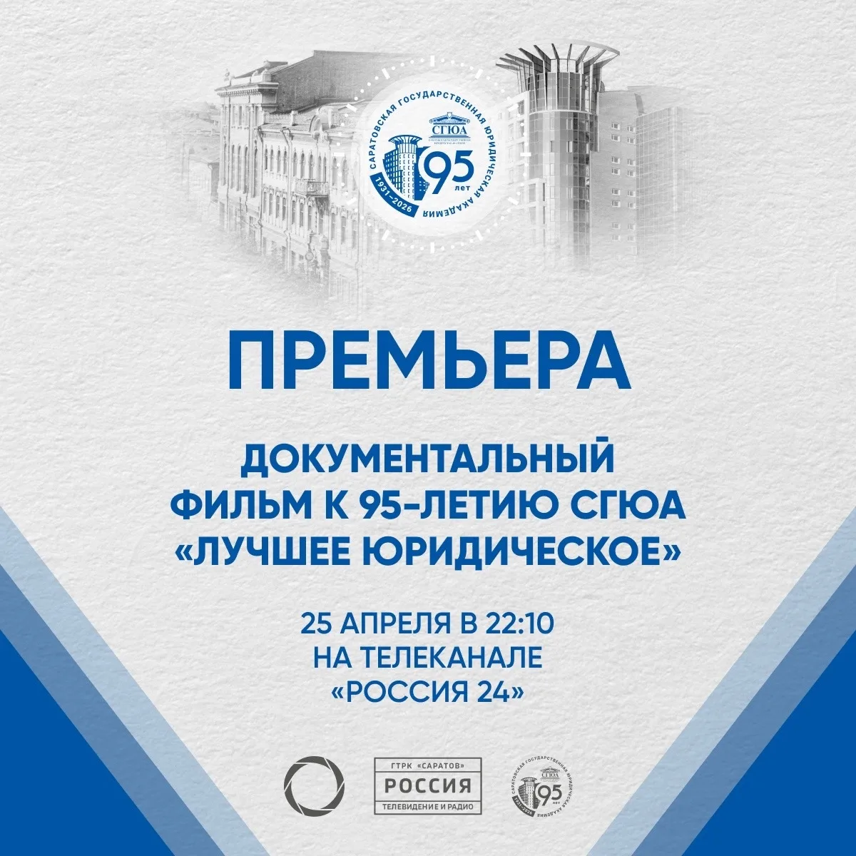 Не пропустите премьеру документального фильма «Лучшее юридическое», посвященного 95-летию СГЮА