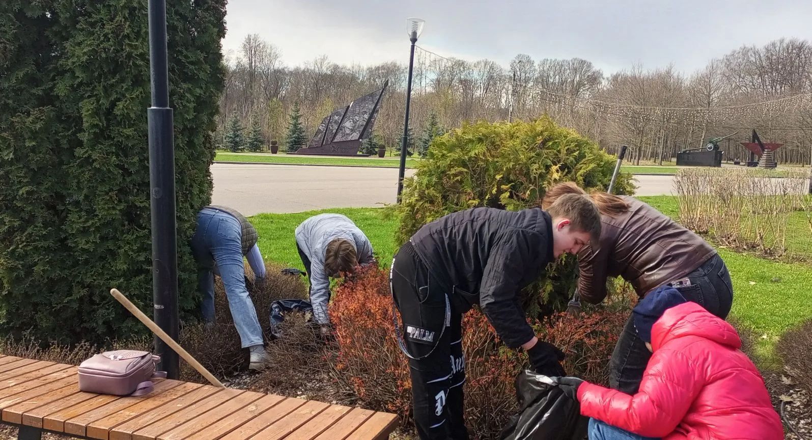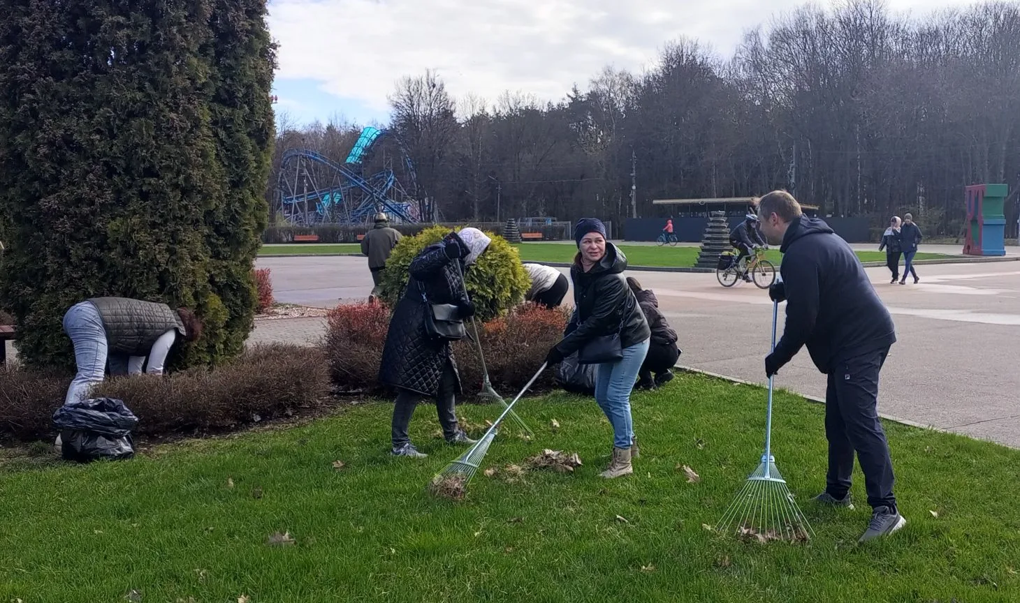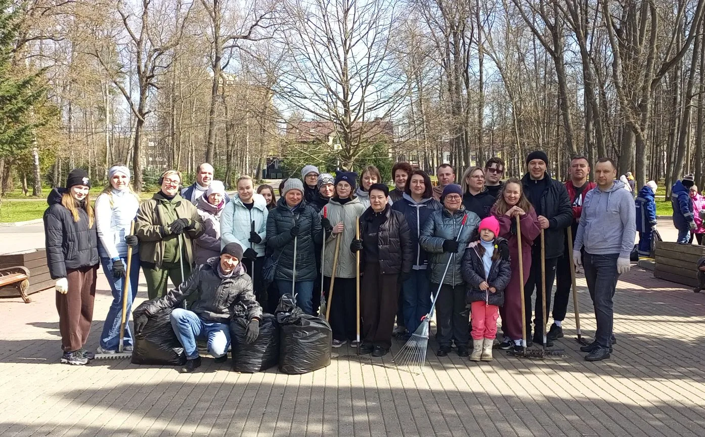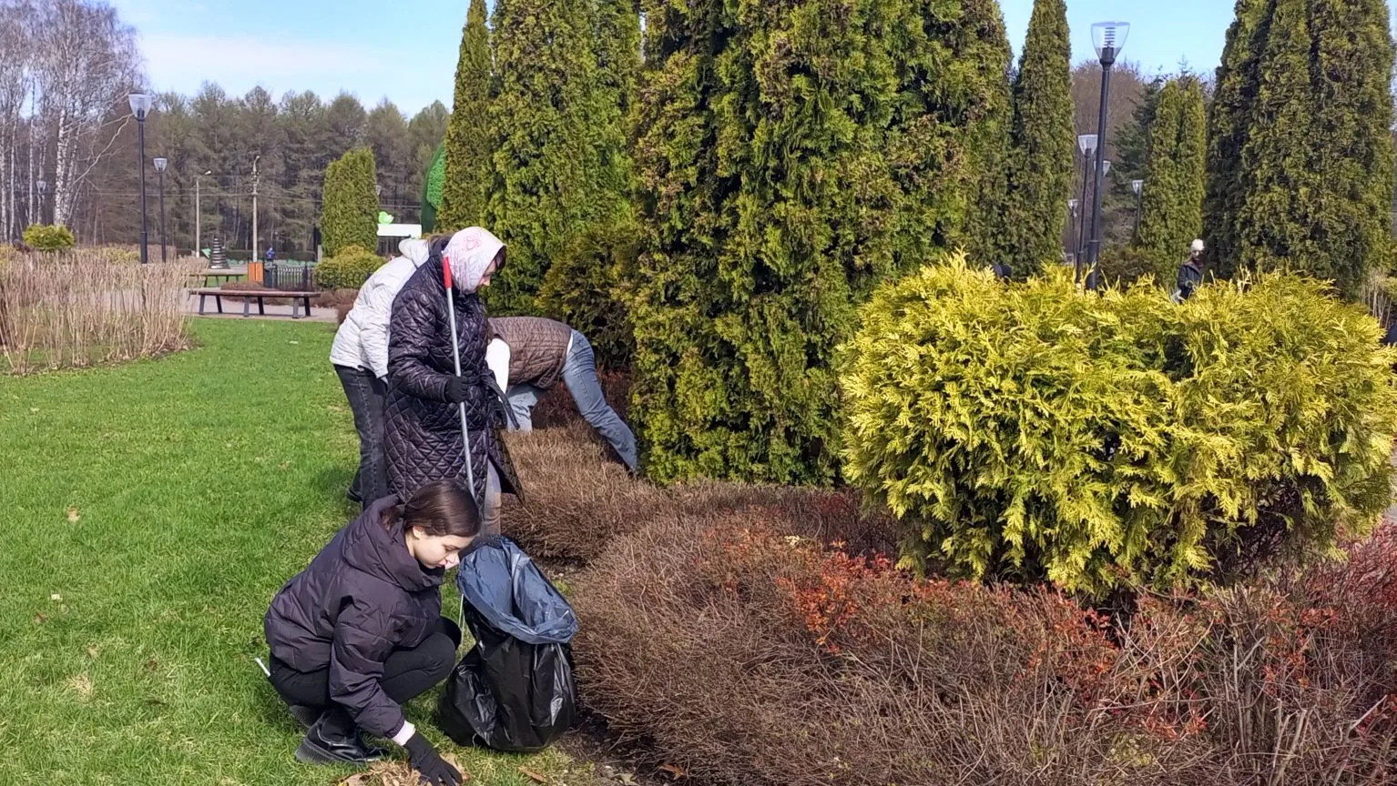 Более 60 сотрудников министерства образования сегодня наводили порядок на территории Центрального парка им. П.П. Белоусова в Туле – собрали прошлогоднюю листву и хвою с газонов центральной аллеи, у главного фонтана и у «Зеленой планеты».
