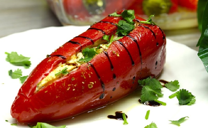 Далее переходят к подготовке начинки: оба вида сыра измельчают и соединяют с мелко нарезанным чесноком, йогуртом, специями и нарезанными помидорами, предварительно сняв с них кожицу. Приправлять солью не стоит, так как сыр уже обладает необходимой соленостью. Добавьте немного бальзамического уксуса для особого вкуса.
