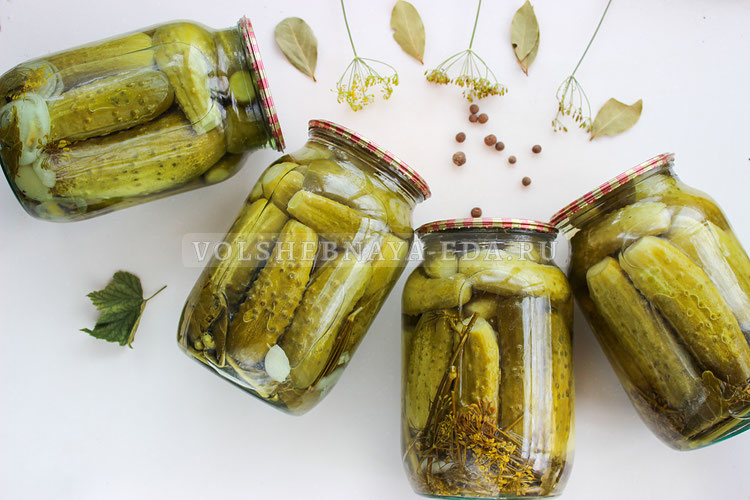 Маринад заливают в банки с огурцами, закатывают крышками и переворачивают вверх дном для остывания. Хранить готовые заготовки следует в прохладном месте. Итог — три банки хрустящих огурцов, которые поля ароматом домашнего уюта даже в зимние зимние дни.