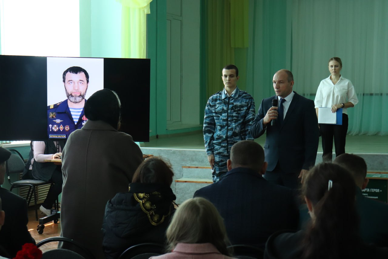 В саратовской школе №76 им. М. Г. Галицкого состоялось торжественное открытие «Парты Героя», посвященной выпускнику школы и участнику специальной военной операции.