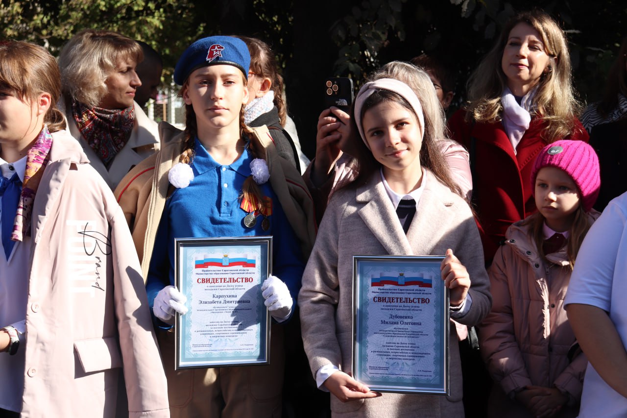 2 октября в честь профессиональных праздников педагогов состоялось торжественное обновление Доски почёта работников образования и Доски успеха молодёжи в сквере Первой учительницы. Этот ежегодный ритуал стал символом признания заслуг педагогов и талантливых школьников региона. В мероприятии приняли участие представители Правительства области, Саратовской областной Думы и общественных организаций, учителя, школьники и студенты региона.