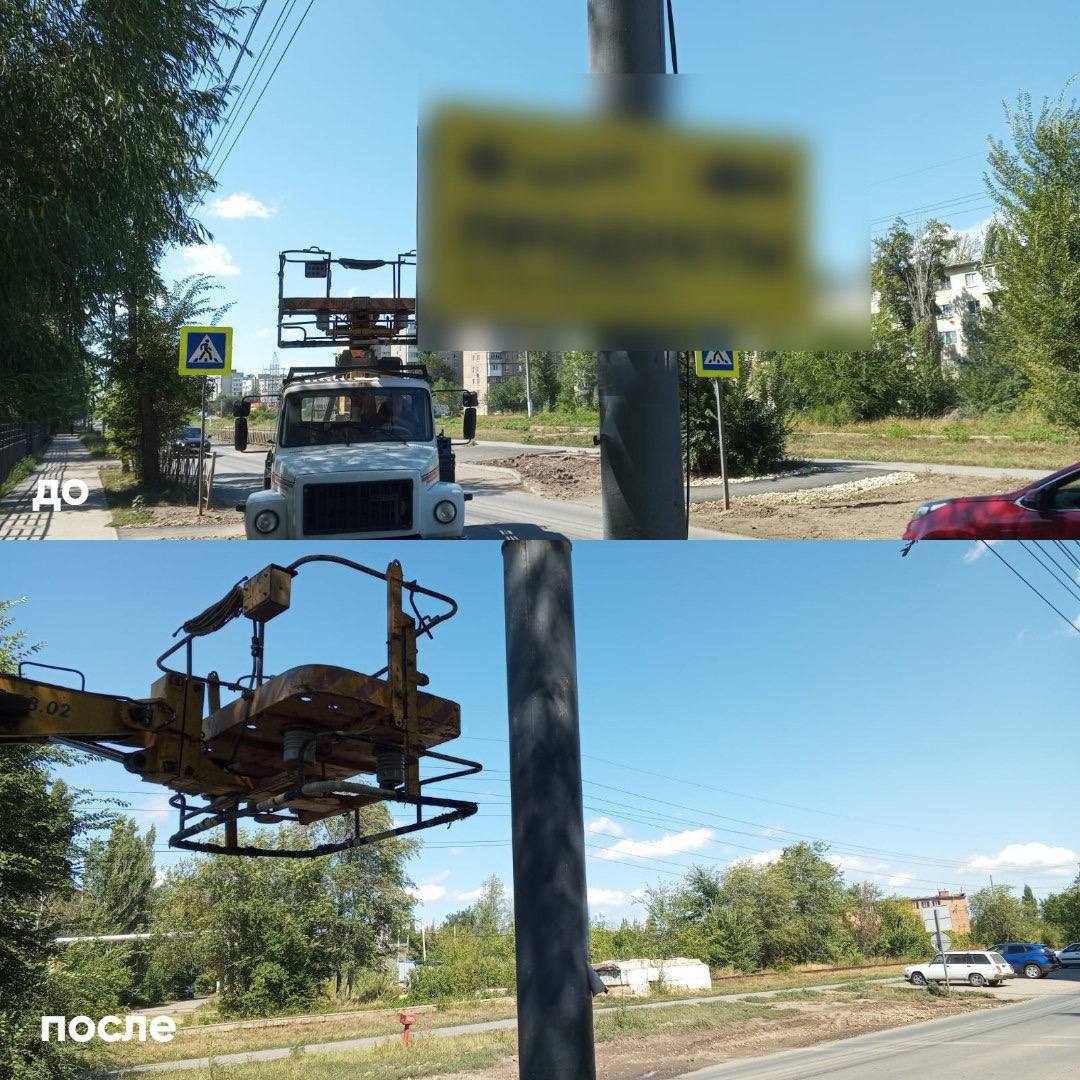 К работе подключилось и МБУ «Энгельсгорсвет», специалисты которого высвобождают световые опоры от штендеров.