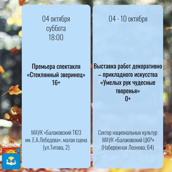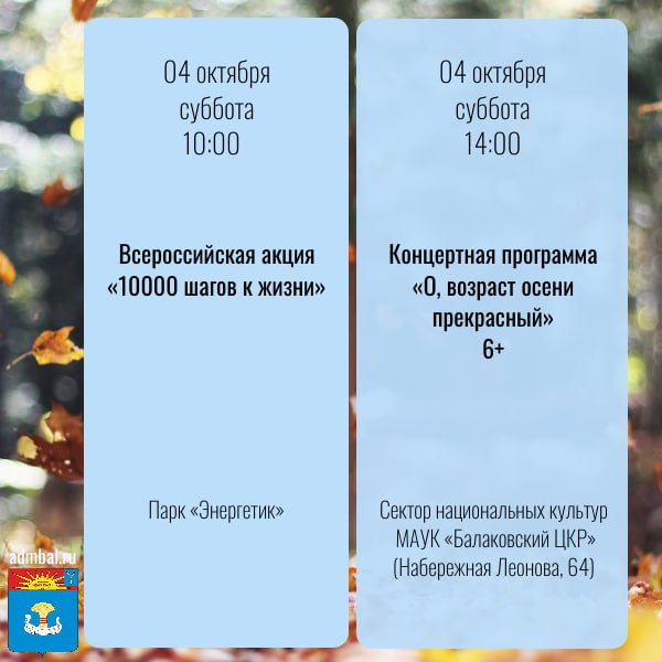 Какие мероприятия пройдут в предстоящие выходные дни на территории Балаковского района? Смотрите в карточках