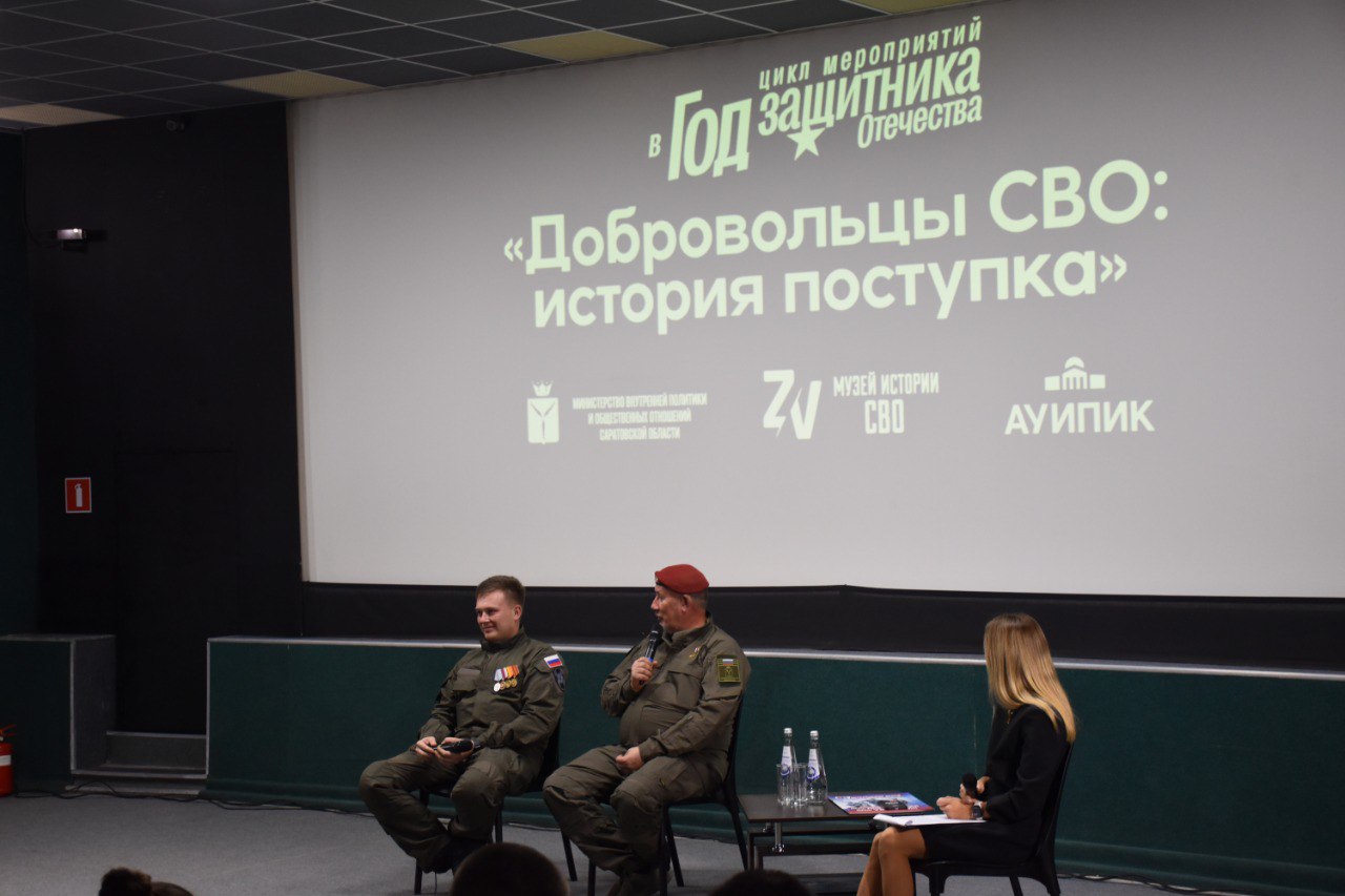 В саратовском кинотеатре «Победа» состоялась встреча Героя России, подполковника Александра Янкловича и его сына, капитана Даниила Янкловича, со студенческой молодежью. Мероприятие прошло в формате живого и откровенного диалога, посвященного службе Отечеству.