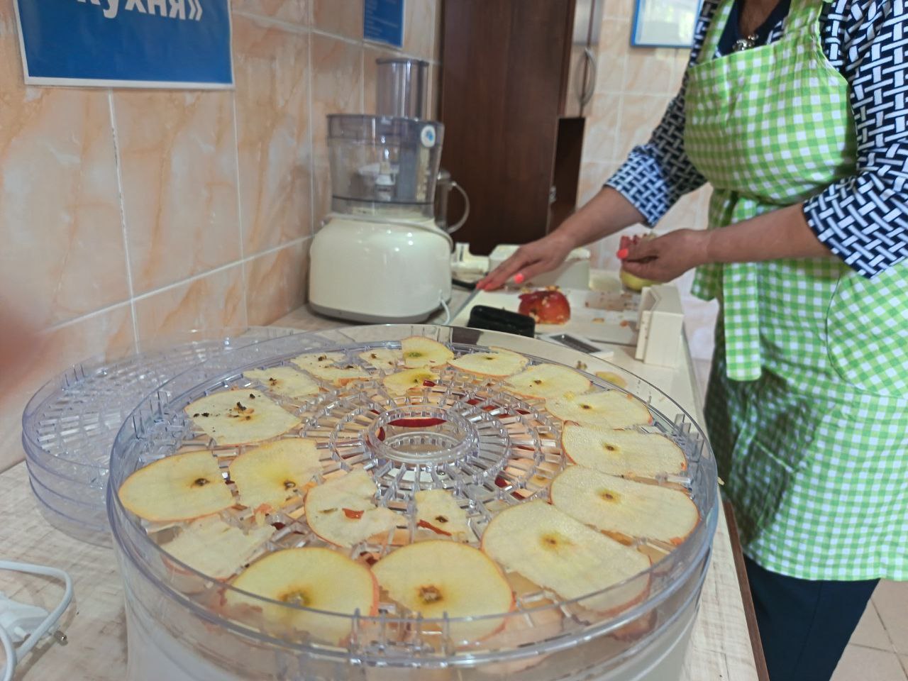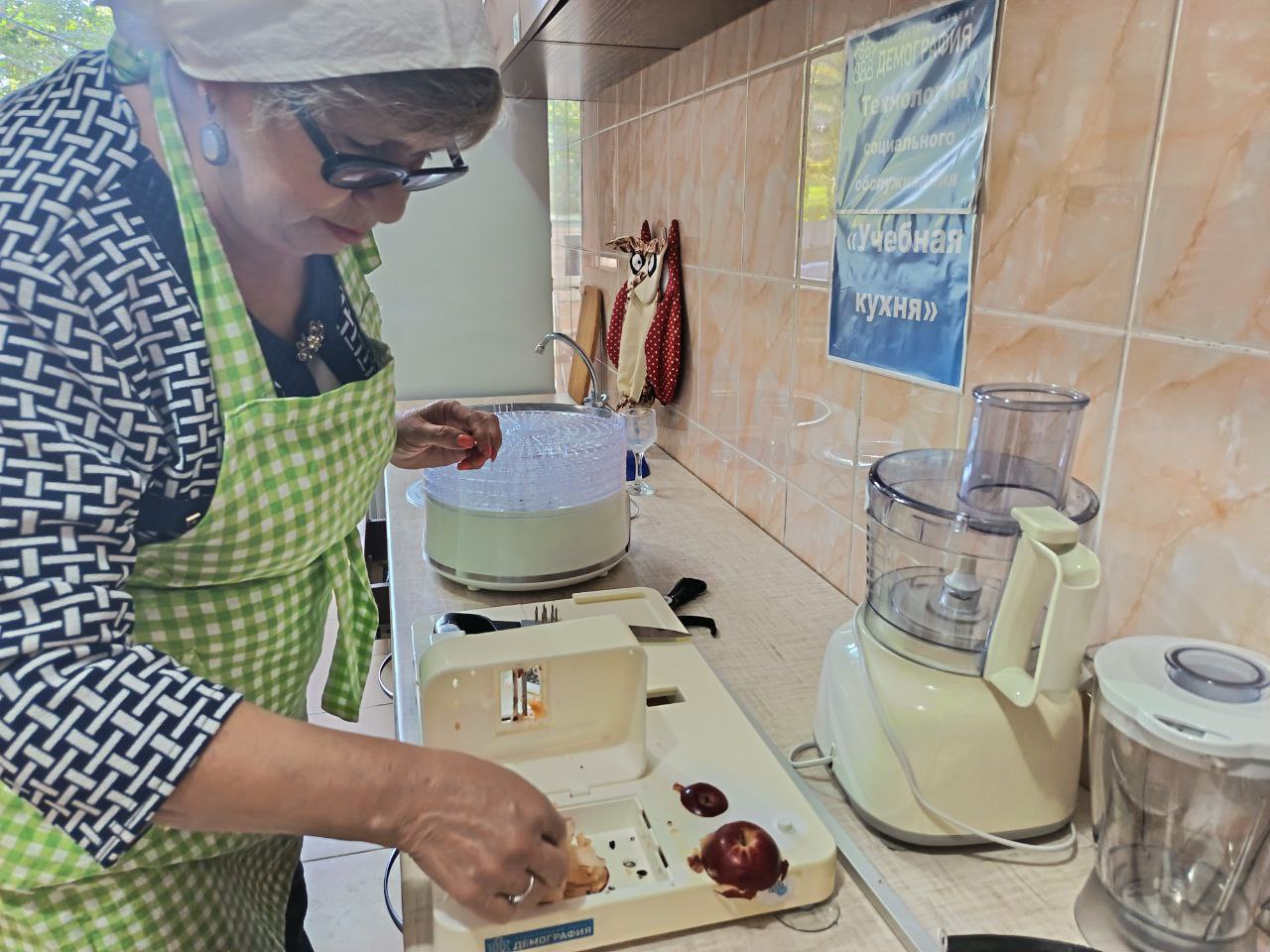 На «Учебной кухне» центра соцобслуживания Питерского района сушили яблоки на зиму