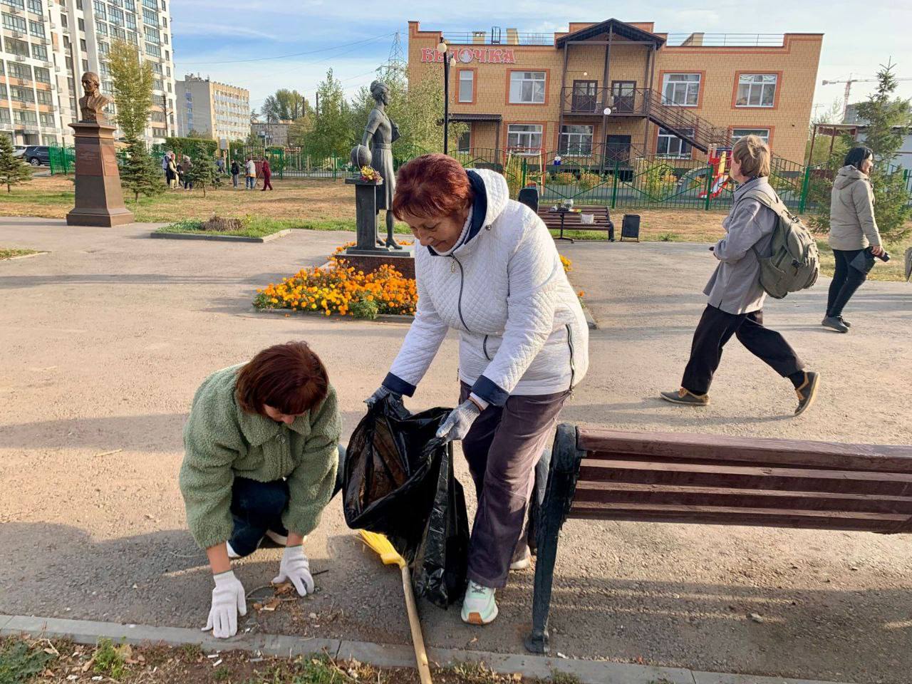 Совет женщин провели уборку в сквере Первой учительницы вместе с заведующими и сотрудниками 5 дошкольных учреждений.