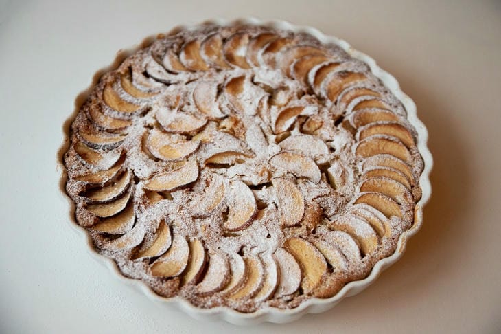 Этот пирог хорош и теплым, когда ароматы яблок и корицы особенно ярки, и полностью остывшим, когда текстура становится еще более нежной.