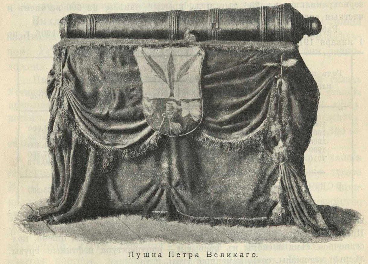 Сохранился рисунок из путеводителя, на котором можно увидеть пушку Петра Великого. Она стояла в здании, где занимались военными делами. Ее осматривал будущий император Александр II во время визита в 1837 году.