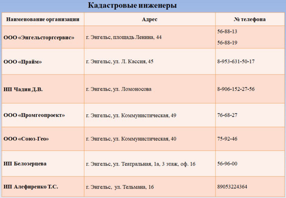 Перечень организаций, оказывающих кадастровые услуги, можно посмотреть в карточке.