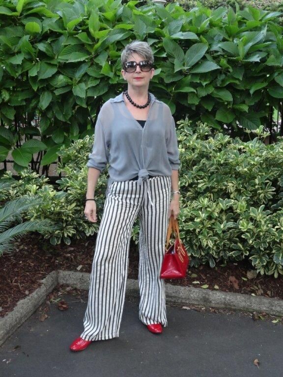 Успешная стилизация брюков в полоску зависит от нескольких факторов. Их яркий низ требует тщательно подобранного верха: