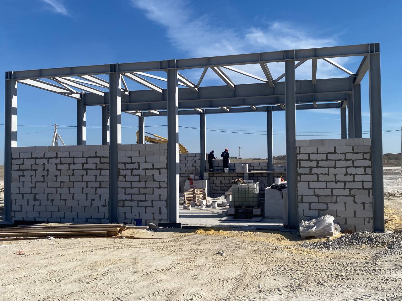 В настоящее время выполняются работы по устройству фундаментов, монтажу металлоконструкций, укладке стен и перегородок, устройству тепловых сетей, наружных сетей водоснабжения и канализации, а также монтажу наружного электроосвещения и системы электроснабжения. На площадке задействовано более 200 человек и 50 единиц техники
